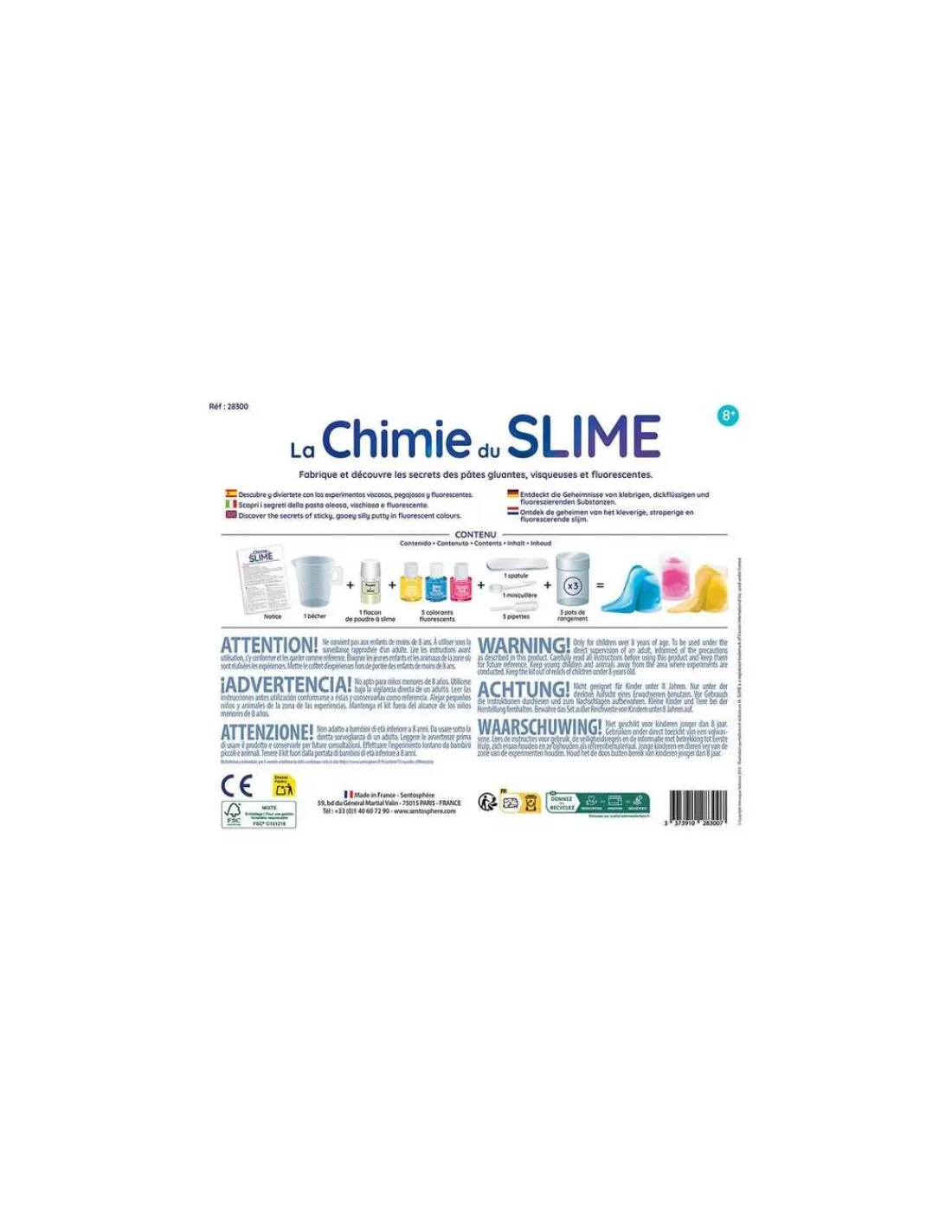 Découvrez le coffret La Chimie du Slime de Sentosphère, un superbe coffret scientifique fabriqué en France permettant aux enfants, dès 8 ans, de fabriquer, en quelques minutes et avec une manipulation à froid sans danger, une pâte visqueuse, complètement délirante, appelée Slime.