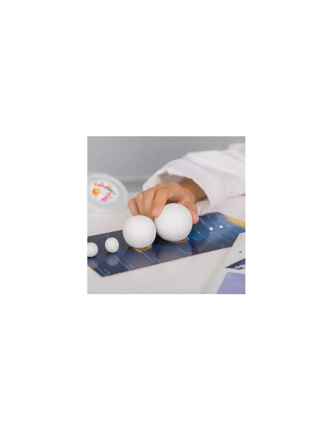 Grâce à la Patarev, une pâte à modeler créative, il sera possible de faire une mise à l’échelle des planètes, tout en découvrant leurs particularités, avant de construire un mini Système Solaire et d’observer le principe des éclipses. La notice montre également comment fabriquer une toupie qui, une fois lancée, aidera à comprendre et illustrer les mouvements de la terre, à l’origine des jours et des saisons.