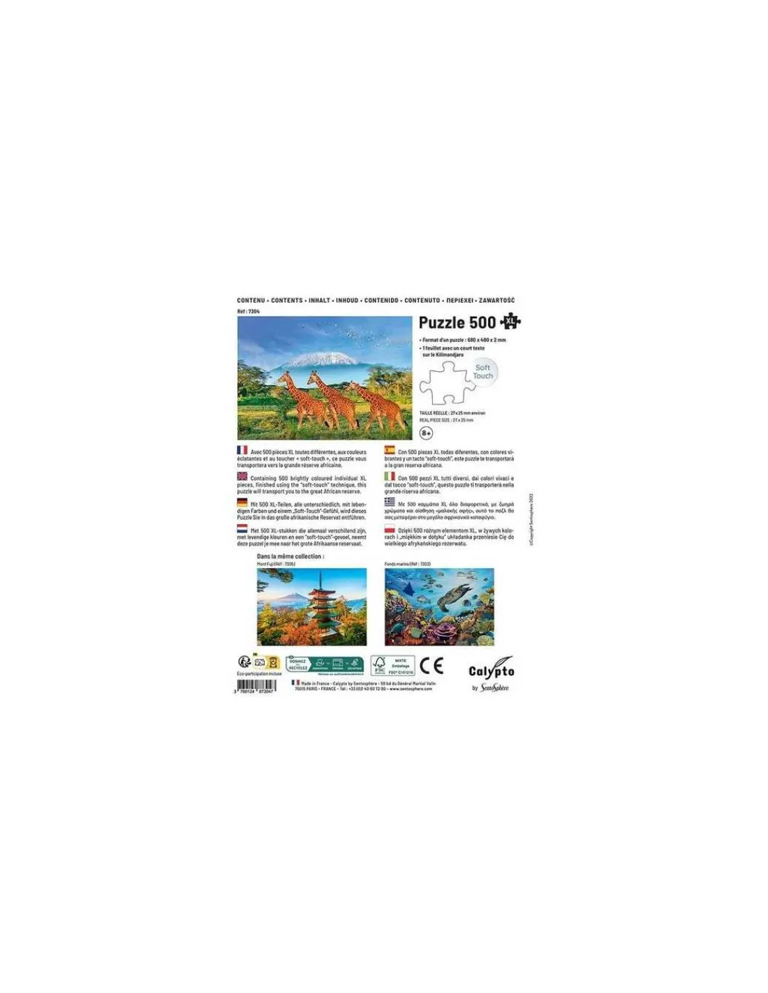 Le coffret comprend 500 pièces et 1 feuillet avec un court texte sur le Kilimandjaro.
