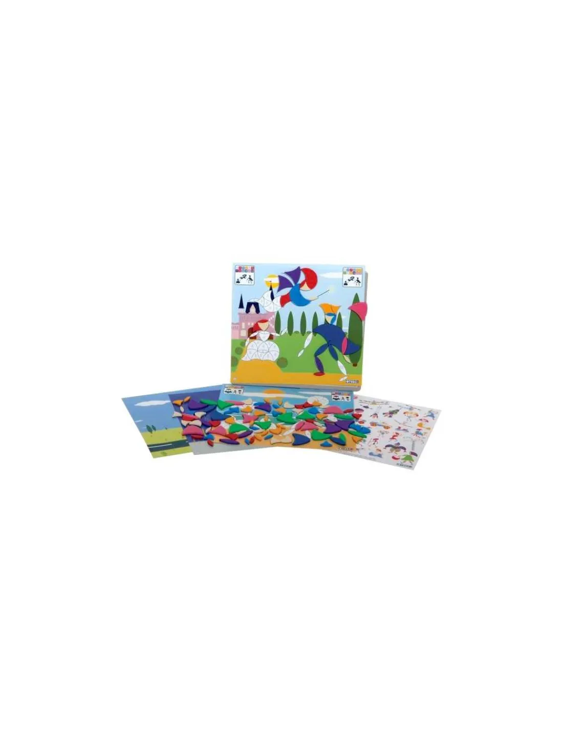 Le coffret comprend un tableau magnétique, 120 magnets en mousse de 2 tailles différentes (8 couleurs) et 90 modèles avec 3 niveaux de jeu.