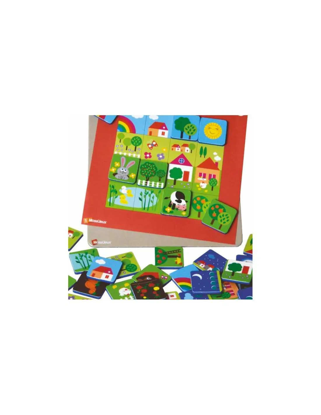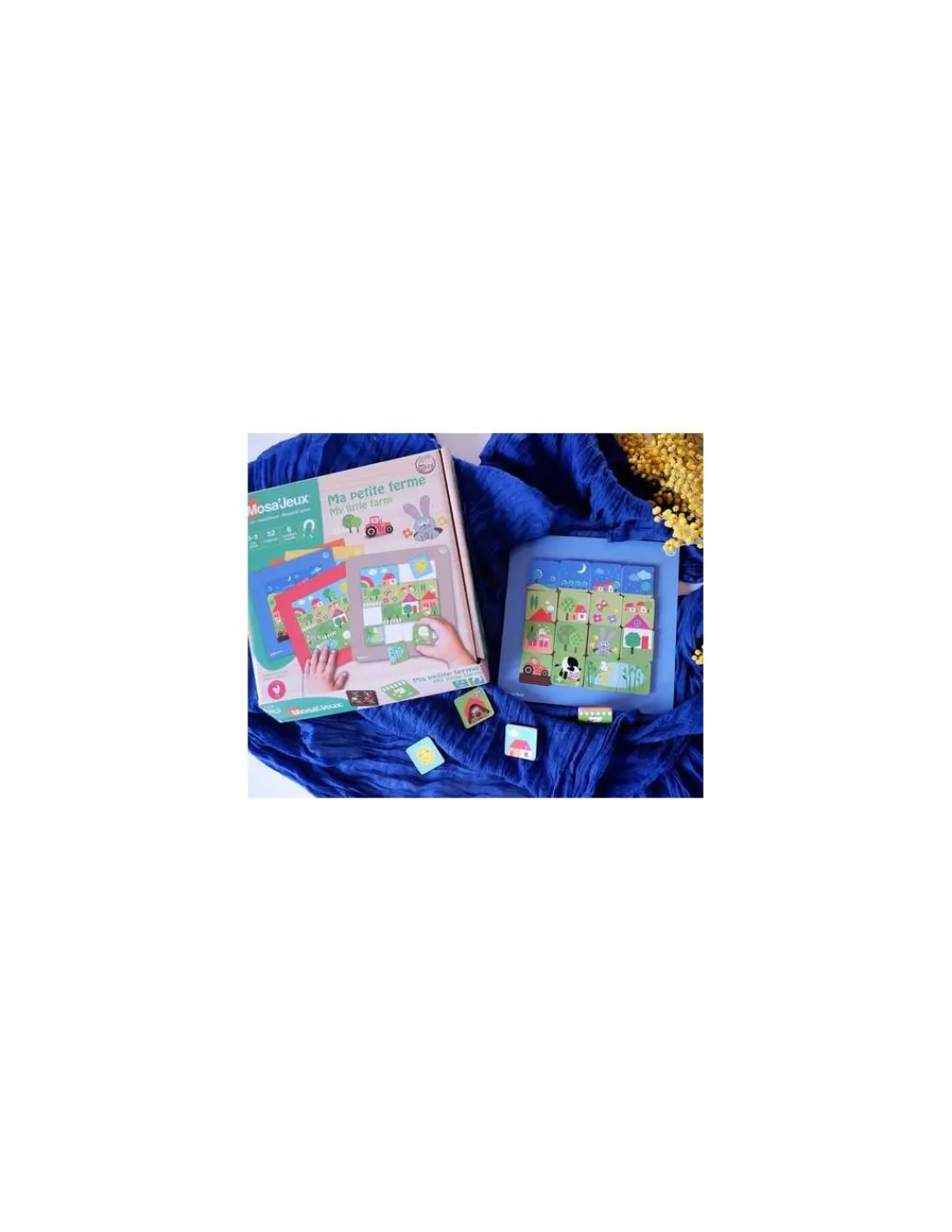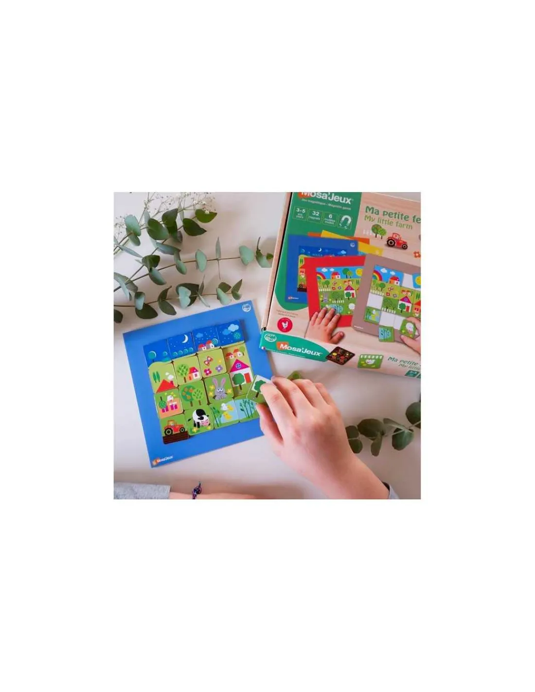 Découvrez le coffret Mosa’Jeux Ma petite ferme de SEPP Jeux, une mosaïque magnétique composée de pièces aimantées permettant aux enfants de reproduire des scènes sur le thème de la ferme. Un jeu éducatif fabriqué en France pour les enfants de 3 à 5 ans.