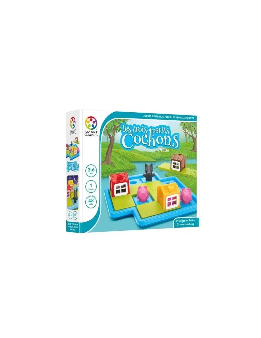 Smartgames vous présente le jeu Les trois petits cochons, un jeu de logique et de réflexion idéal pour les jeunes enfants de 3 à 6 ans.