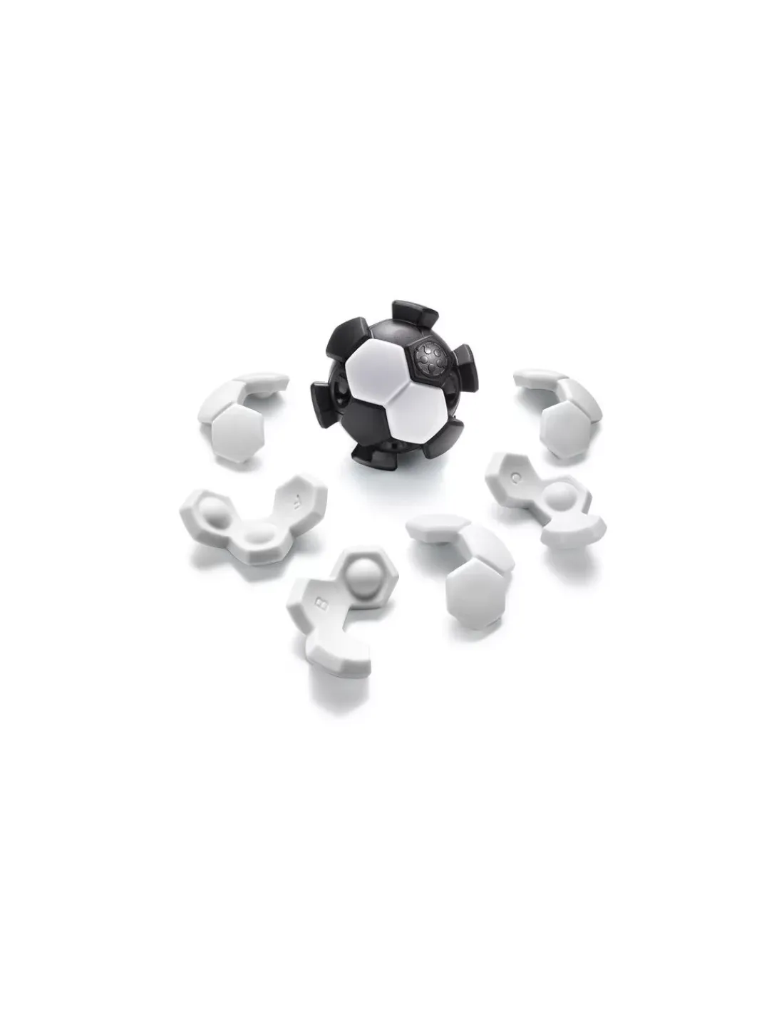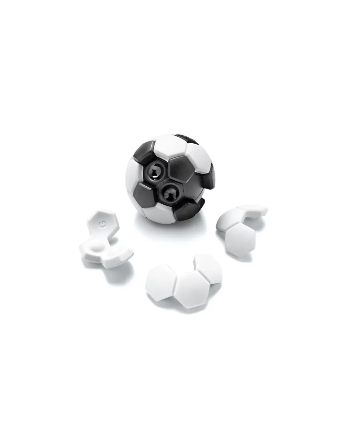Le coffret contient 1 ossature noire en forme de ballon de football et 7 pièces (de 2 ou 3 hexagones blancs).