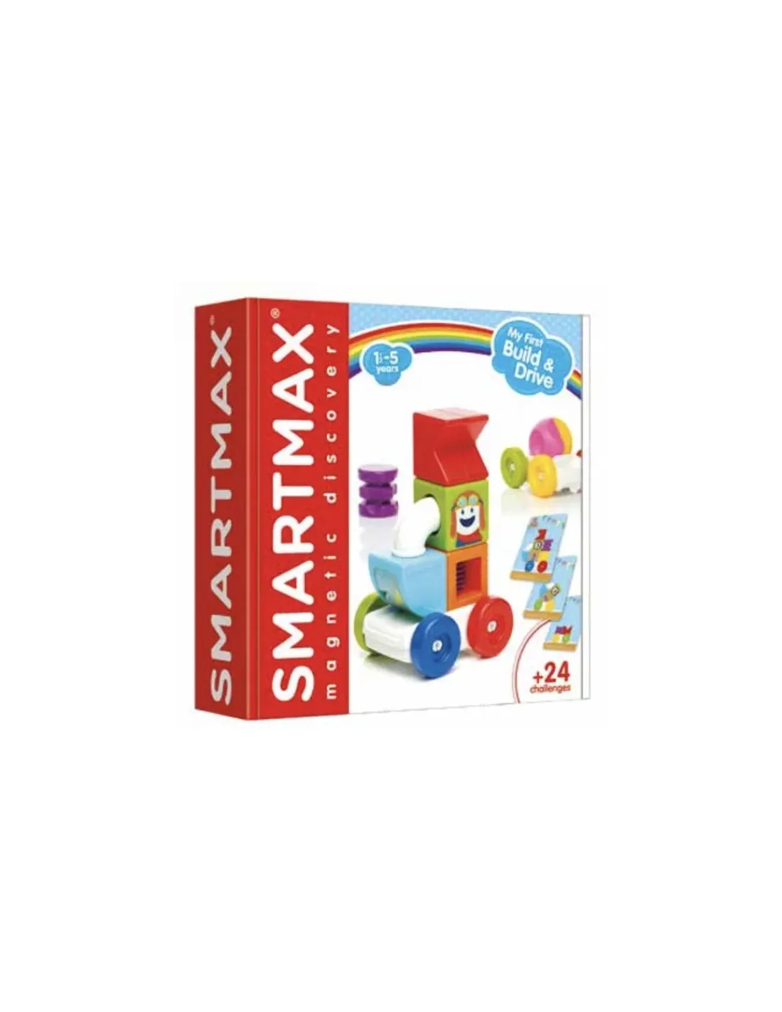 Découvrez Mon premier véhicule à construire de Smartmax, un coffret pour les enfants de 1 à 5 ans avec 8 pièces de constructions qui utilisent le magnétisme pour s’assembler sans effort.