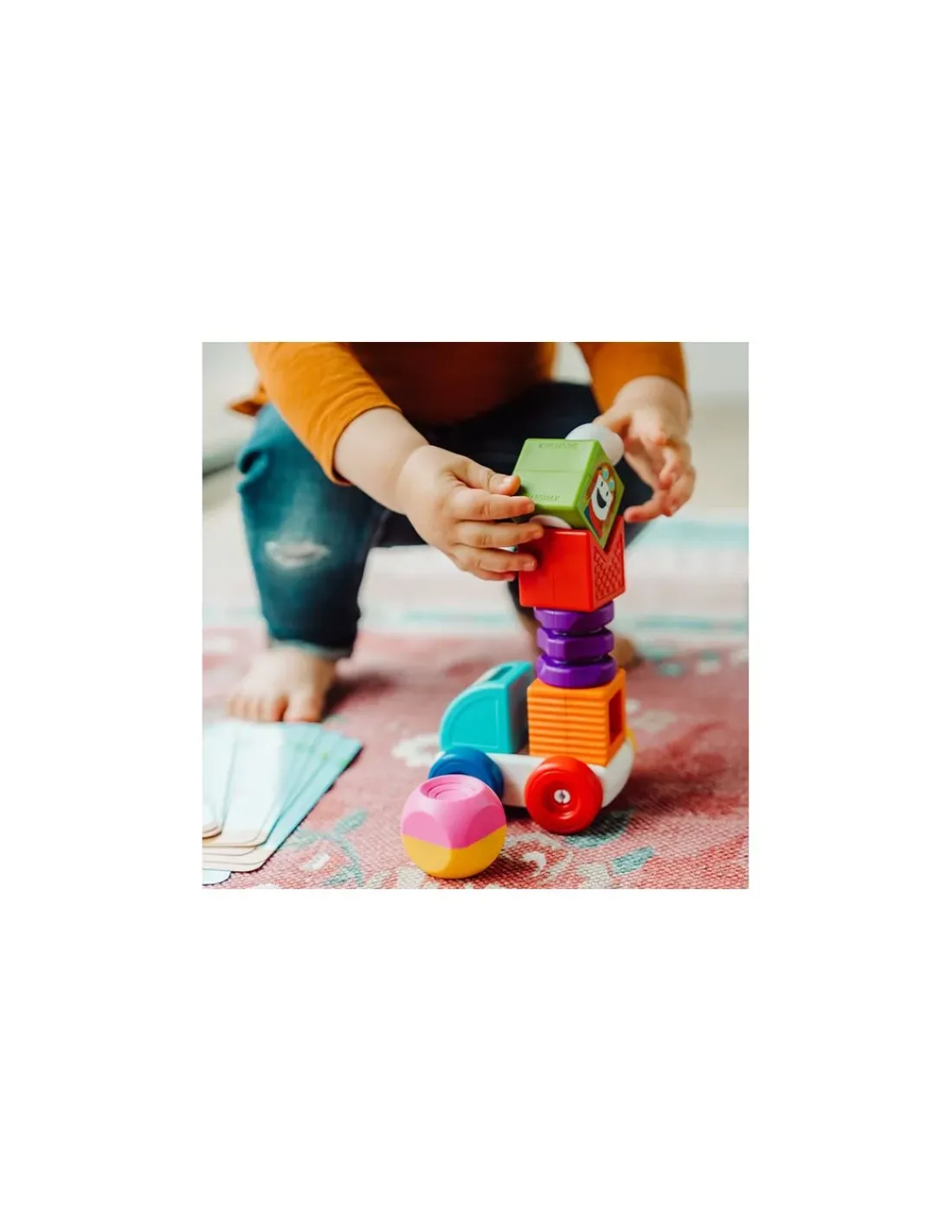 Grâce à ce jouet 2 en 1, votre enfant pourra laisser libre court à son imagination en plaçant les pièces sur le chassis recto-verso, afin de construire son propre véhicule magnétique. Il pourra également suivre les instructions pour réaliser 24 modèles indiqués sur les cartes défis.