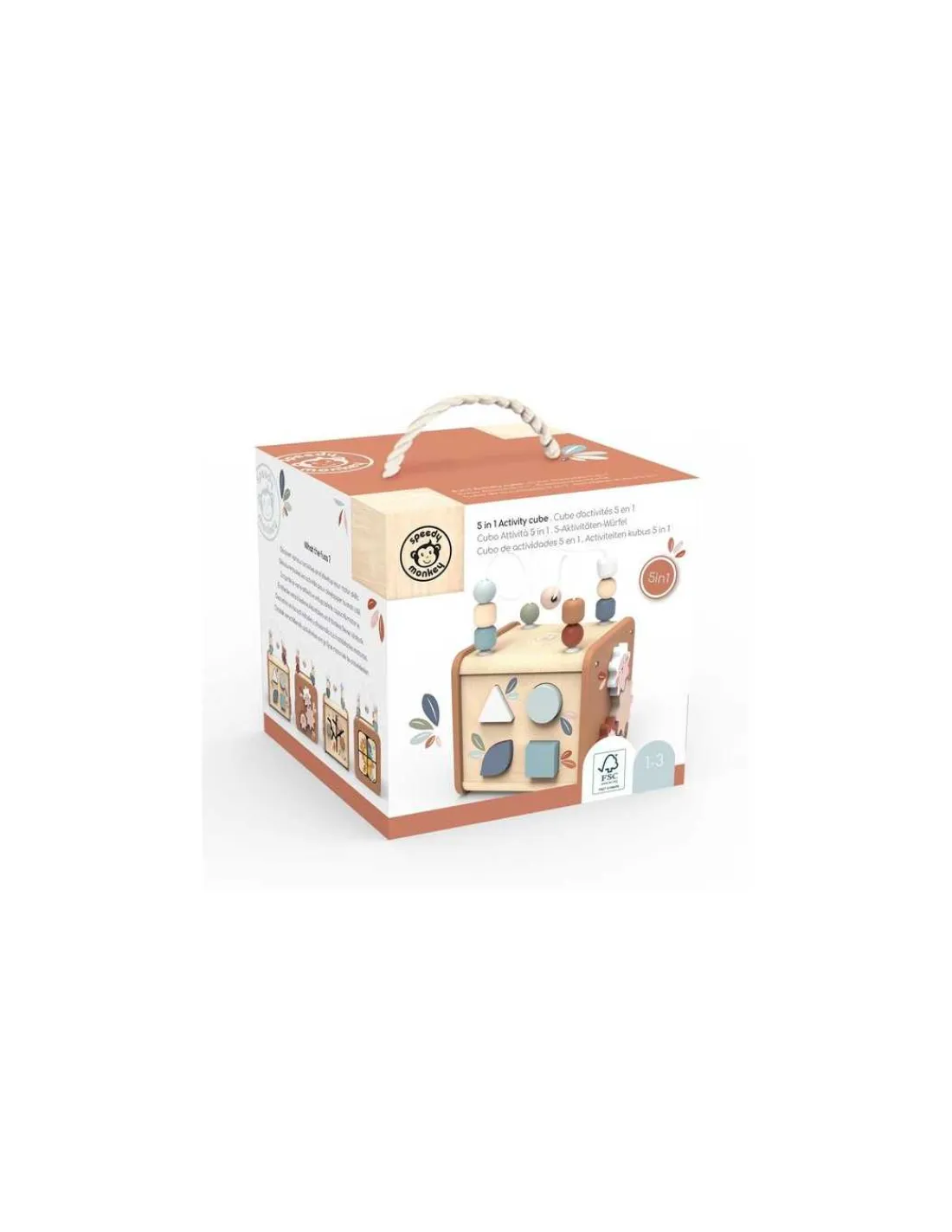 Découvrez le Cube d’activités 5 en 1 de Speedy Monkey, un jouet d’éveil en bois offrant 5 activités à offrir en cadeau aux bébés dès 12 mois.