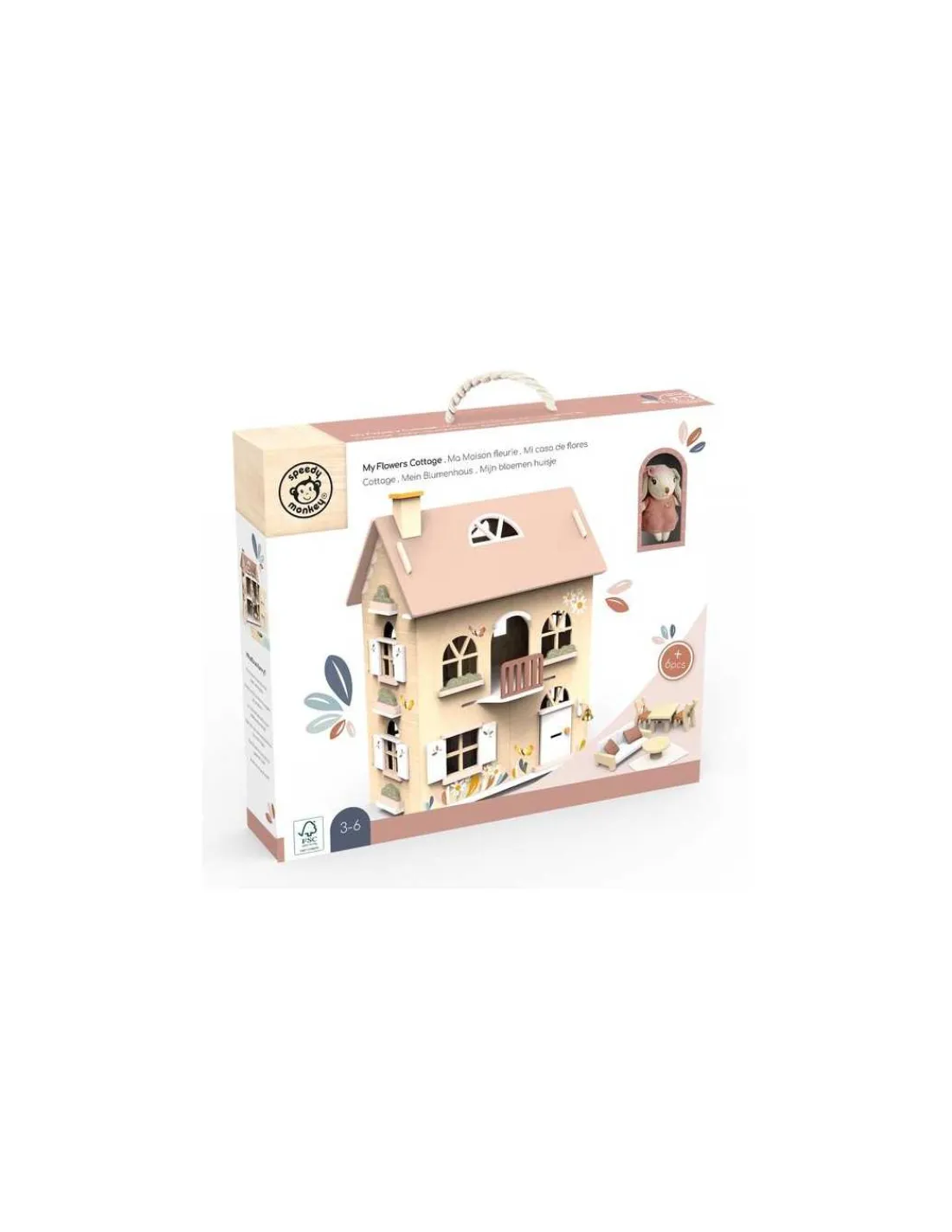 Découvrez la maison de poupées fleurs de Speedy Monkey, une maison en bois sur 3 étages, décorée et meublée, qui fera rêver les enfants à partir de 3 ans. Ajoutez une touche de magie et de créativité à l’espace de jeu de votre enfant avec cette maison de poupée, une façon ludique et élégante de développer son imagination !
