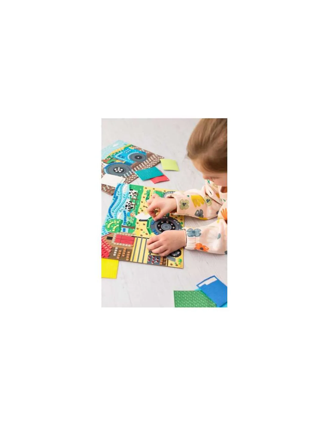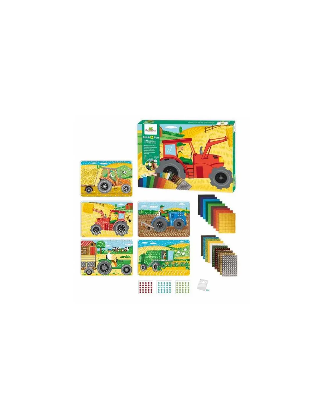 Découvrez le coffret de 5 mosaïques la vie à la ferme de Sycomore, un coffret de loisirs créatifs de la collection Stick & Fun pour les enfants à partir de 5 ans sur le thème de la ferme avec des tracteurs et une moissonneuse.