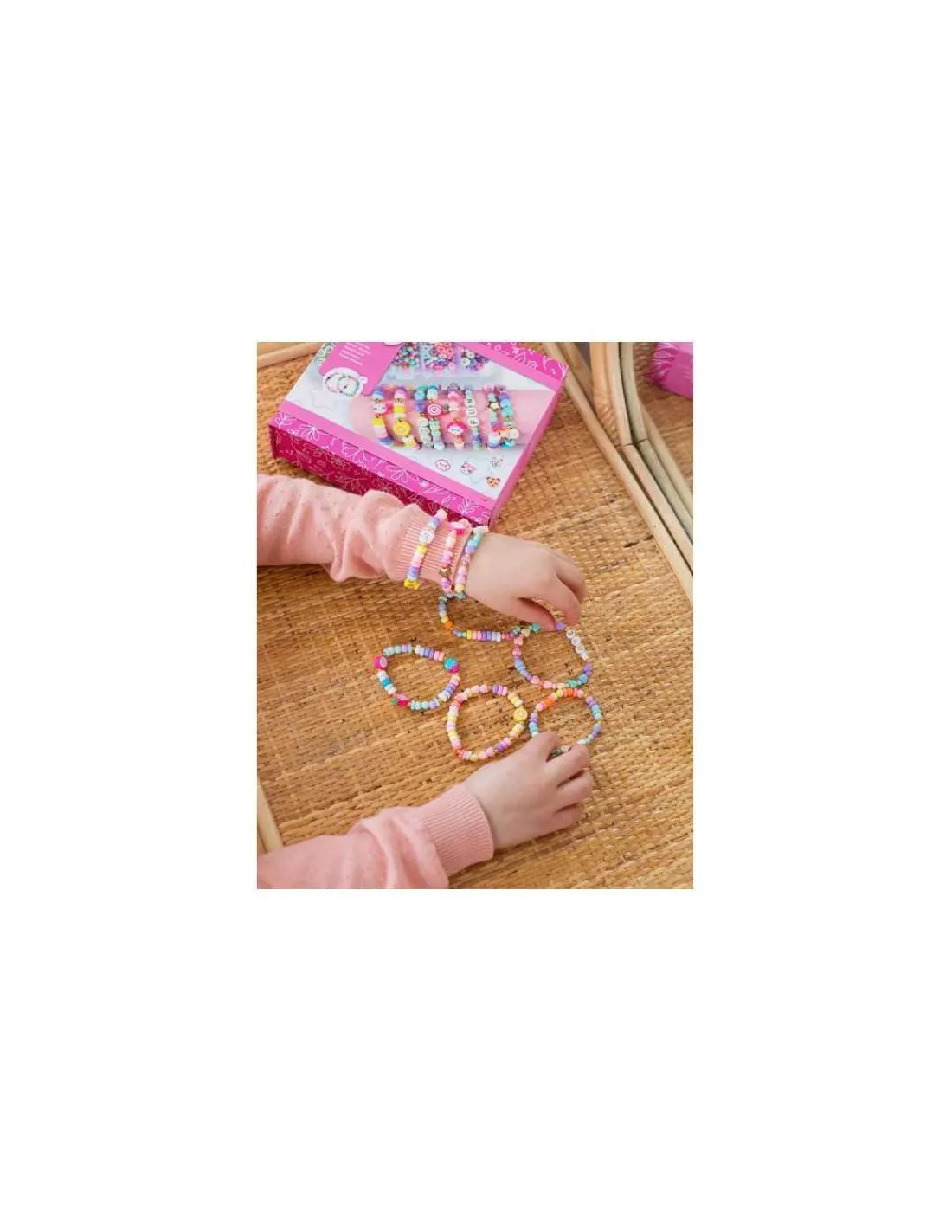 Grâce à ce joli coffret, votre enfant pourra créer jusqu’à 9 bracelets Kawaï. Présenté dans une jolie boîte façon coffret cadeau, ce kit contient tout ce qu’il faut pour laisser libre cours à sa créativité : un assortiment de perles colorées, acidulées et dorées, ainsi que du fil élastique facile à manipuler pour un ajustement parfait.
