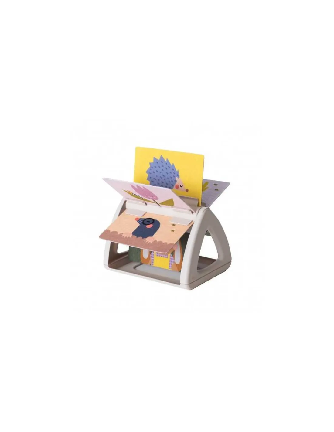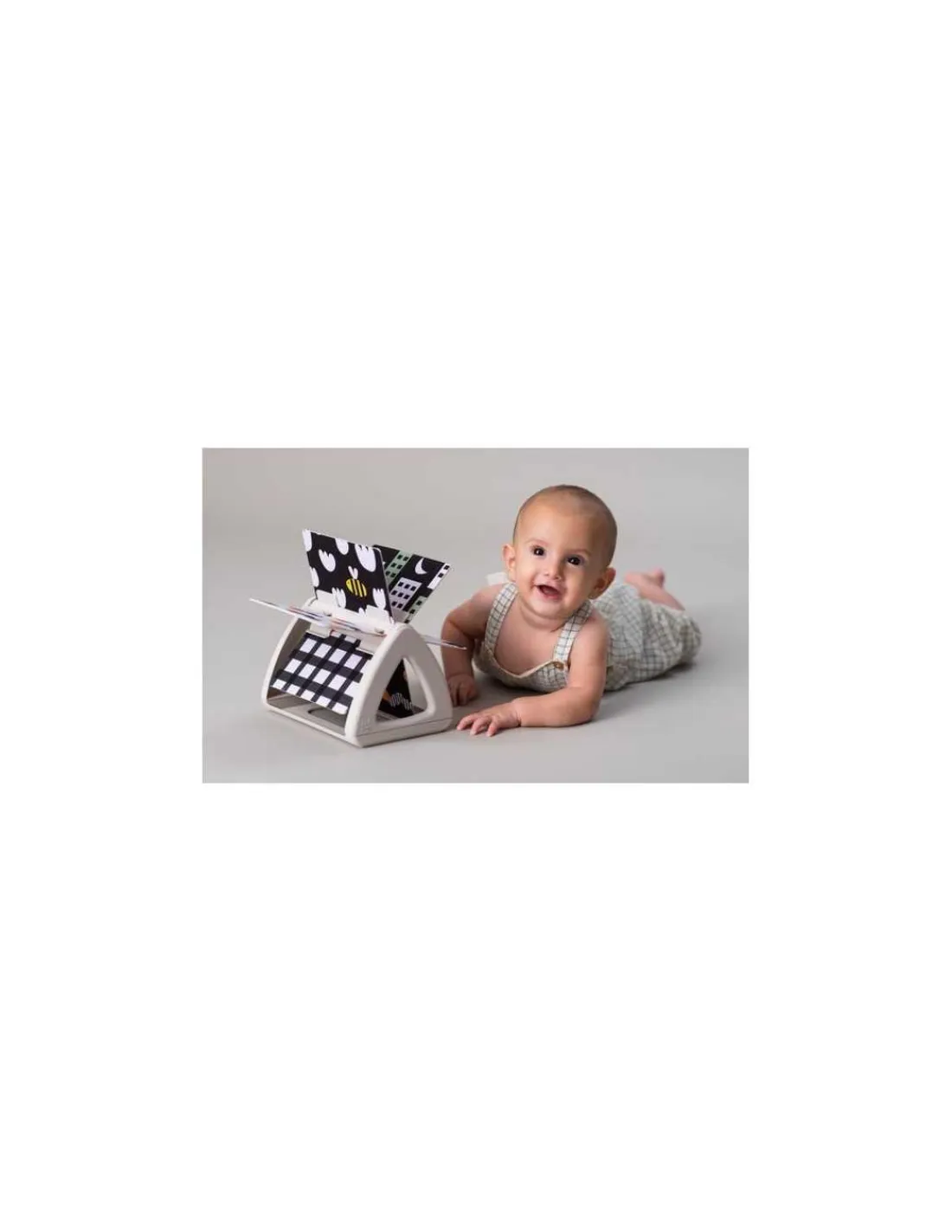 Un livre sous forme de chevalet où bébé peut tourner les pages. Lorsque bébé tourne les pages, cela déclenche un son de grelot.