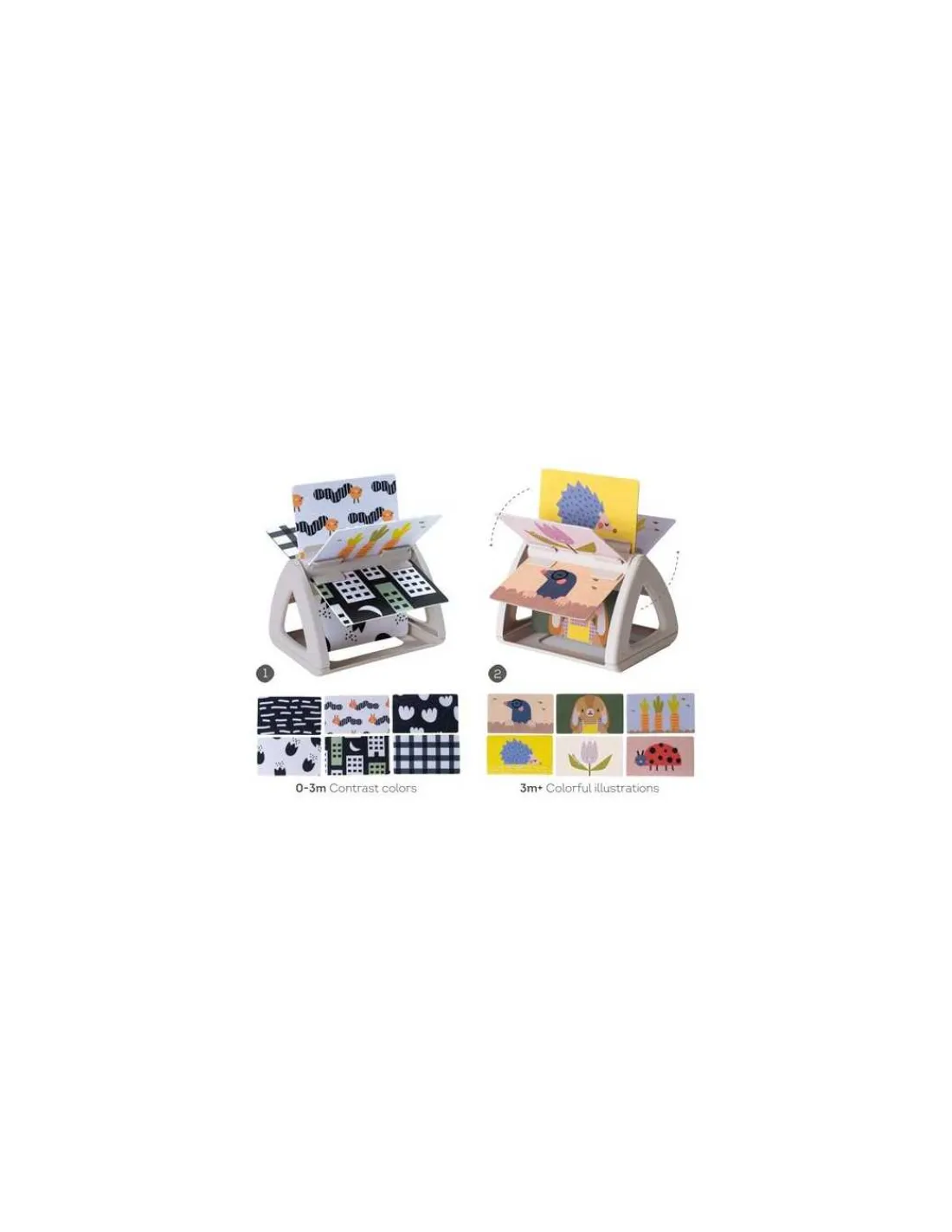 Les cartes, en feutrine, peuvent être retirées du support. Votre enfant appréciera les 6 cartes en feutrine épaisses double face: dessin noir et blanc en contraste et dessins colorés.