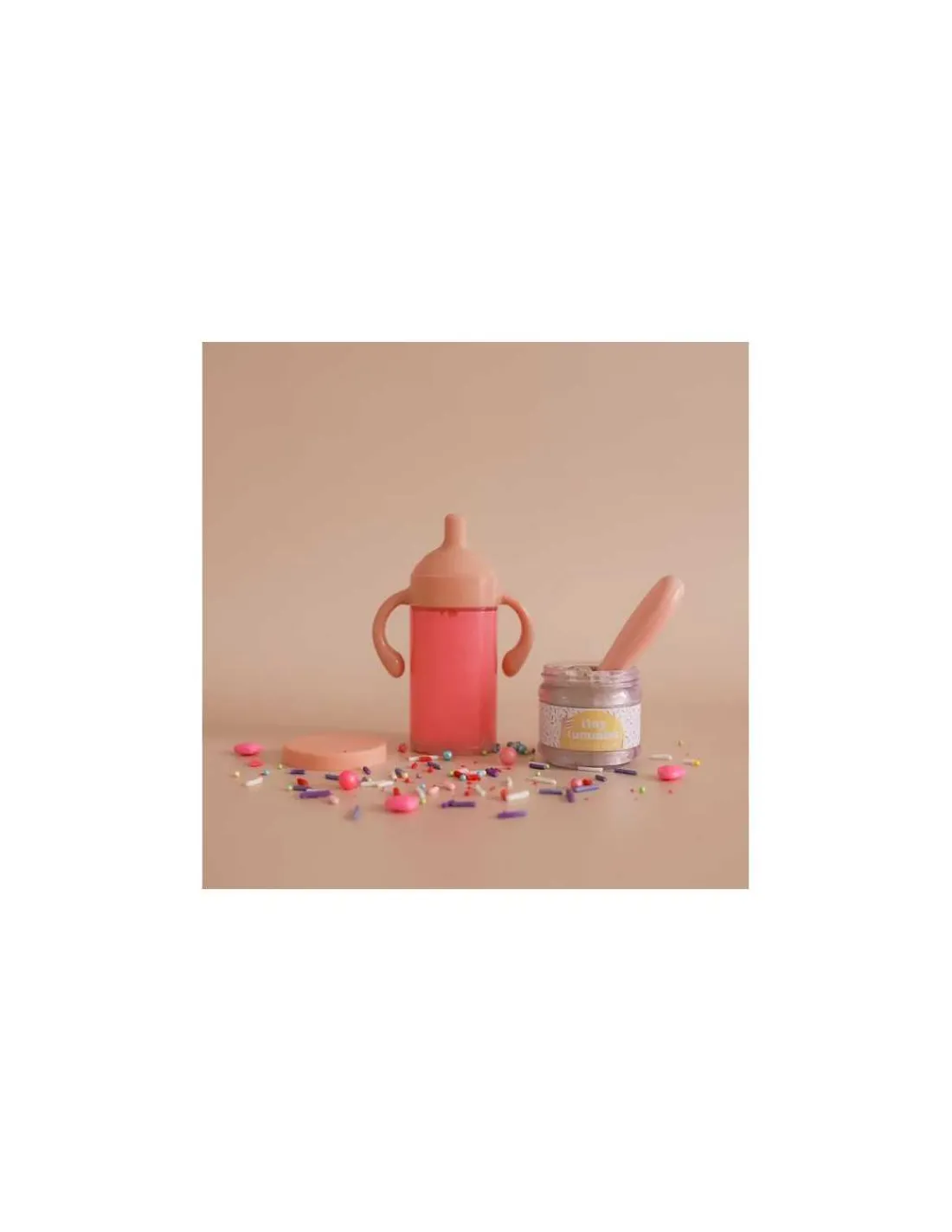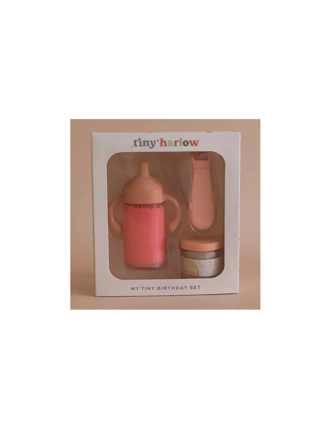 Découvrez la box Anniversaire Lait Fraise de Tiny Harlow, un coffret d’accessoires indispensables pour les enfants qui aiment jouer à la poupée dès 3 ans. Un coffret cadeau comprenant un petit pot Tiny Tummies, une cuillère et un biberon magique.