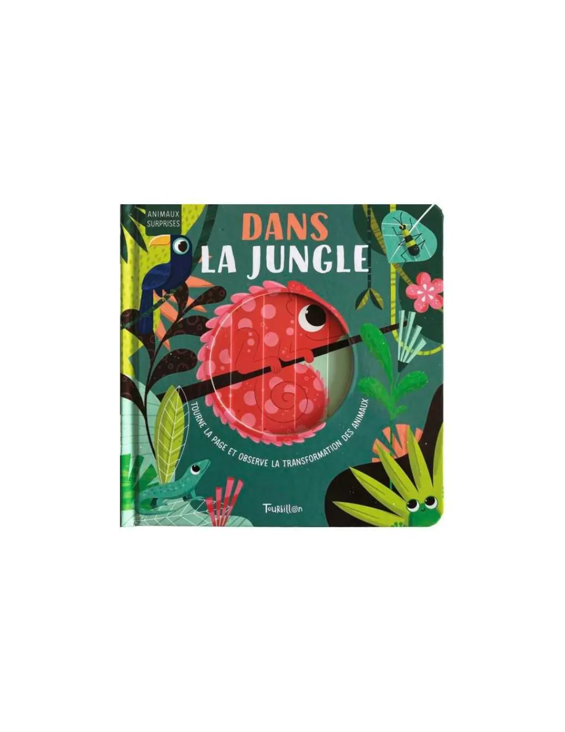 Découvrez le livre Dans la jungle des éditions Tourbillon, un livre en carton de 16 pages pour les enfants à partir de 1 an. Tournez les pages et observez les transformations des animaux.