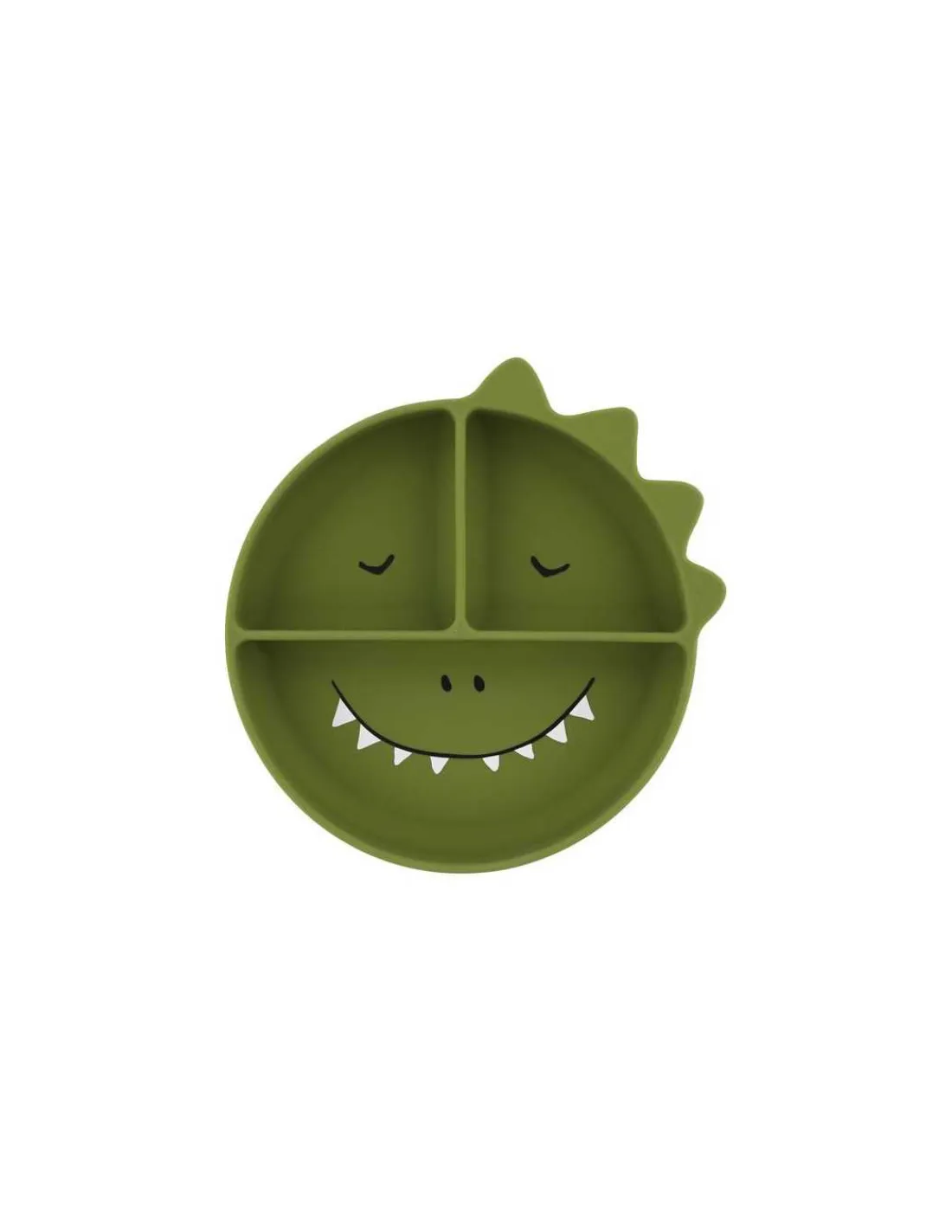 Découvrez l’assiette à compartiments avec ventouse Dinosaure de Trixie, une vaisselle pour enfant pour accompagner votre enfant dans ses premiers repas et ses premiers découvertes gustatives.