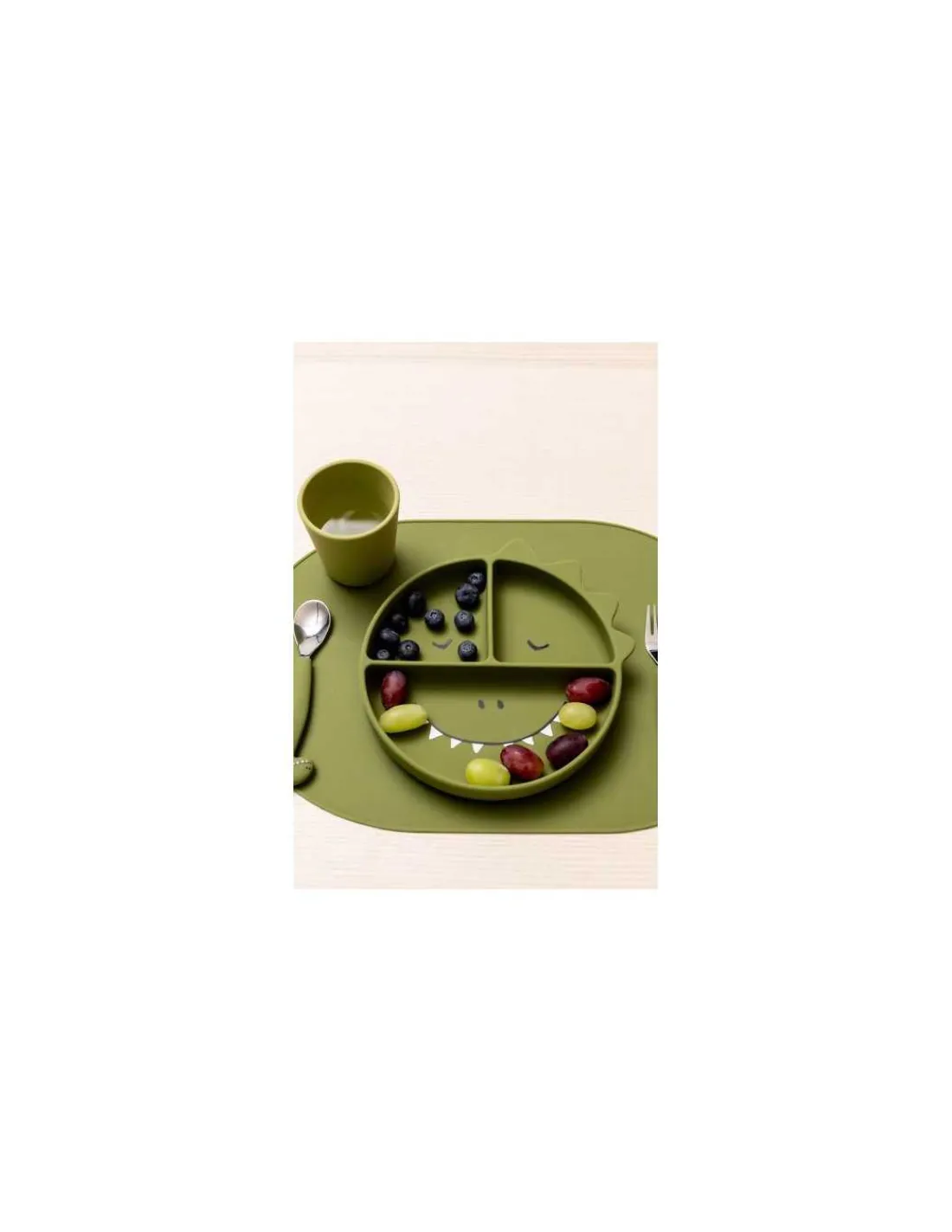 Remplissez cette assiette et savourez un bon repas ensemble. Cette magnifique assiette verte en forme de dinosaure est munie d’une ventouse pratique pour adhérer facilement aux surfaces planes. Fini les assiettes renversées! Le rebord haut permet un ramassage facile pour les enfants qui apprennent à manger seuls. Elle est également subdivisée en différents compartiments, afin d’aider votre enfant à faire la différence entre les aliments, saveurs et textures.