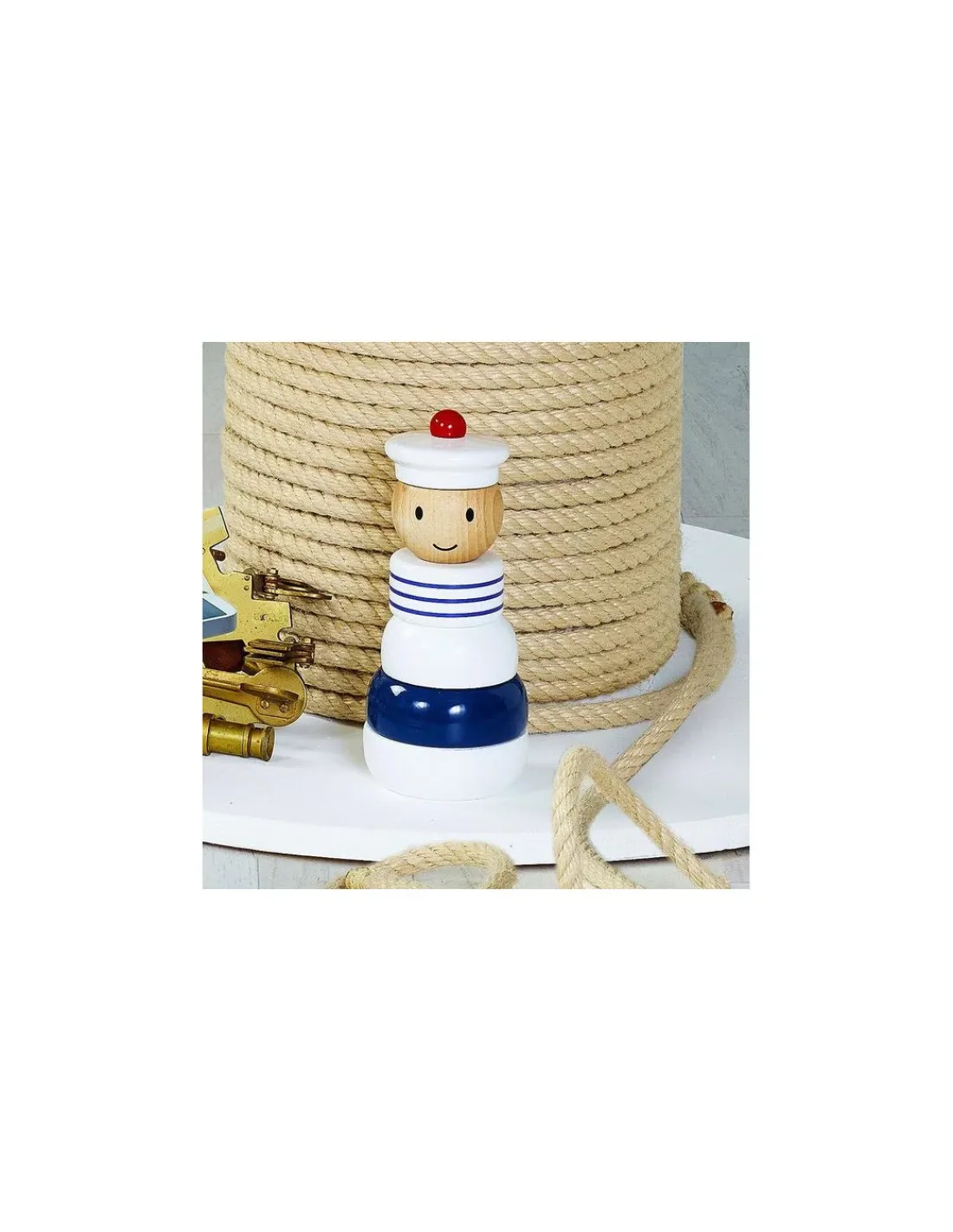 Cet empilable en bois massif laqué en forme de marin va émerveiller les plus petits dès 1 an et les aidera dans l’acquisition de la motricité fine. Objet de déco, il trouvera également une place privilégiée dans la chambre des enfants.