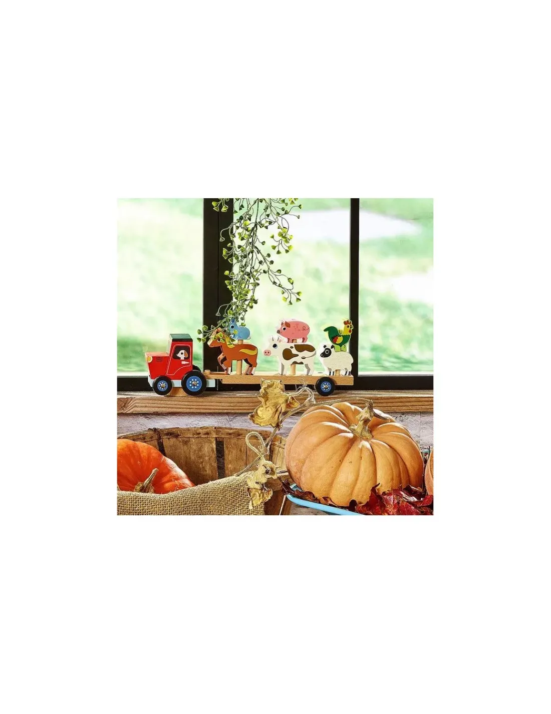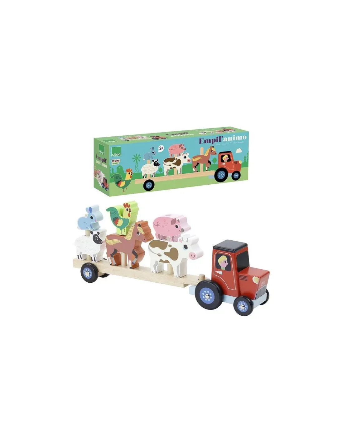 Découvrez le jeu empil’animo de la ferme de Vilac, un jouet d’éveil en bois pour les enfants dès 2 ans, un jeu d’empilement avec un tracteur et des animaux illustré par Ingela P.Arrhenius.