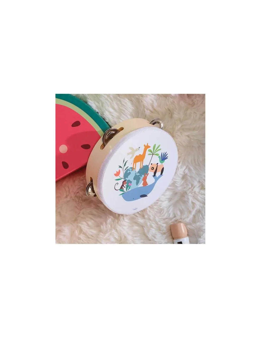 Découvrez le Tambourin les animaux du monde Sarah Betz de Vilac, un instrument de musique en bois pour les enfants à partir de 3 ans. Un jouet d’éveil pour initier les enfants aux sons et aux rythmes.