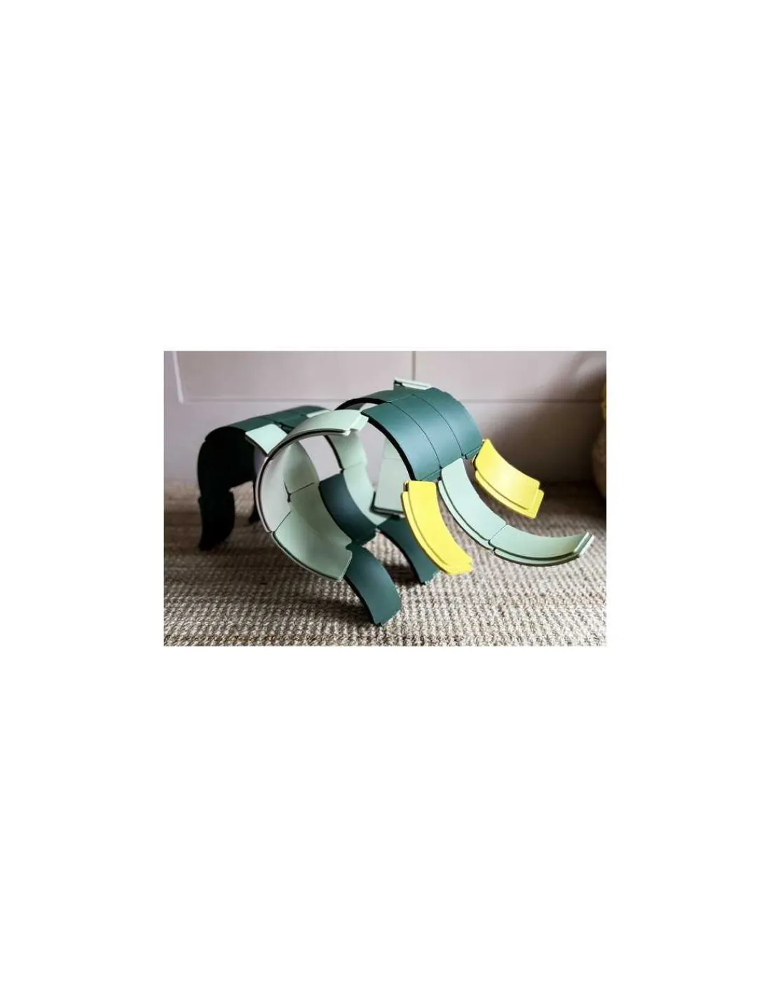 Le coffret contient 2 pièces jaunes, 8 pièces verts foncés et 8 pièces gris menthe.