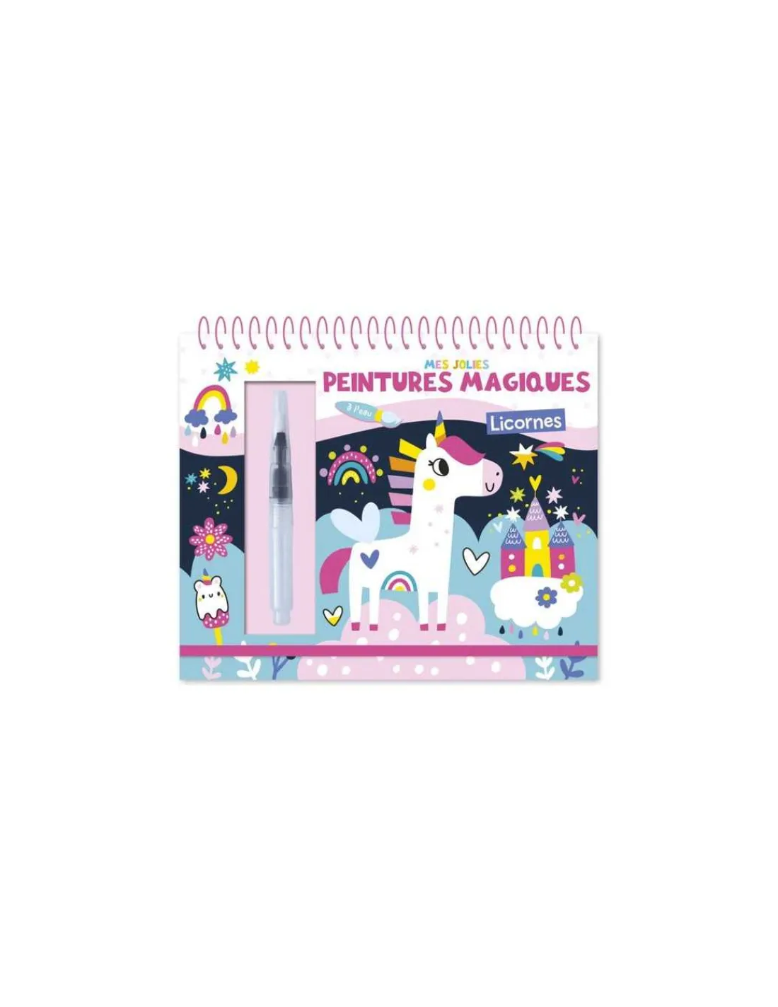 Découvrez Mes jolies peintures magiques Licornes de 123 Soleil !, une activité de coloriage originale pour les enfants de 3 à 6 ans sur le thème des licornes. Un carnet à spirale de 14 pages avec 7 scènes à peindre et 1 pinceau avec un réservoir à eau.