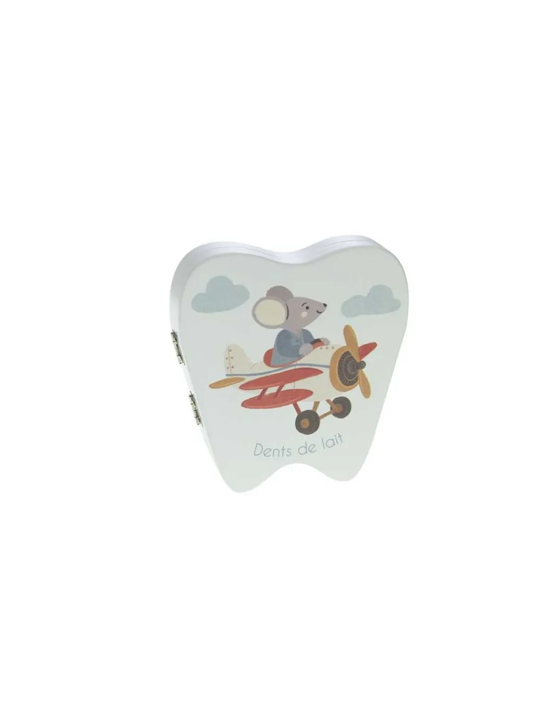 Une jolie boite qui s’ouvre, dans laquelle vous pourrez placer les 20 dents de lait de votre enfant et y glisser une pièce à l’intérieur lorsque la souris sera passée.