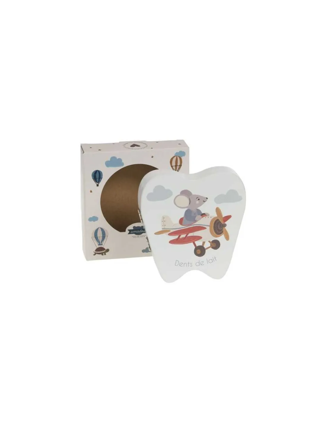 Découvrez la boite à dents Augustin de Amadeus Les Petits, une boite à quenottes en bois illustrée qui gardera précieusement les premières dents de votre enfant.