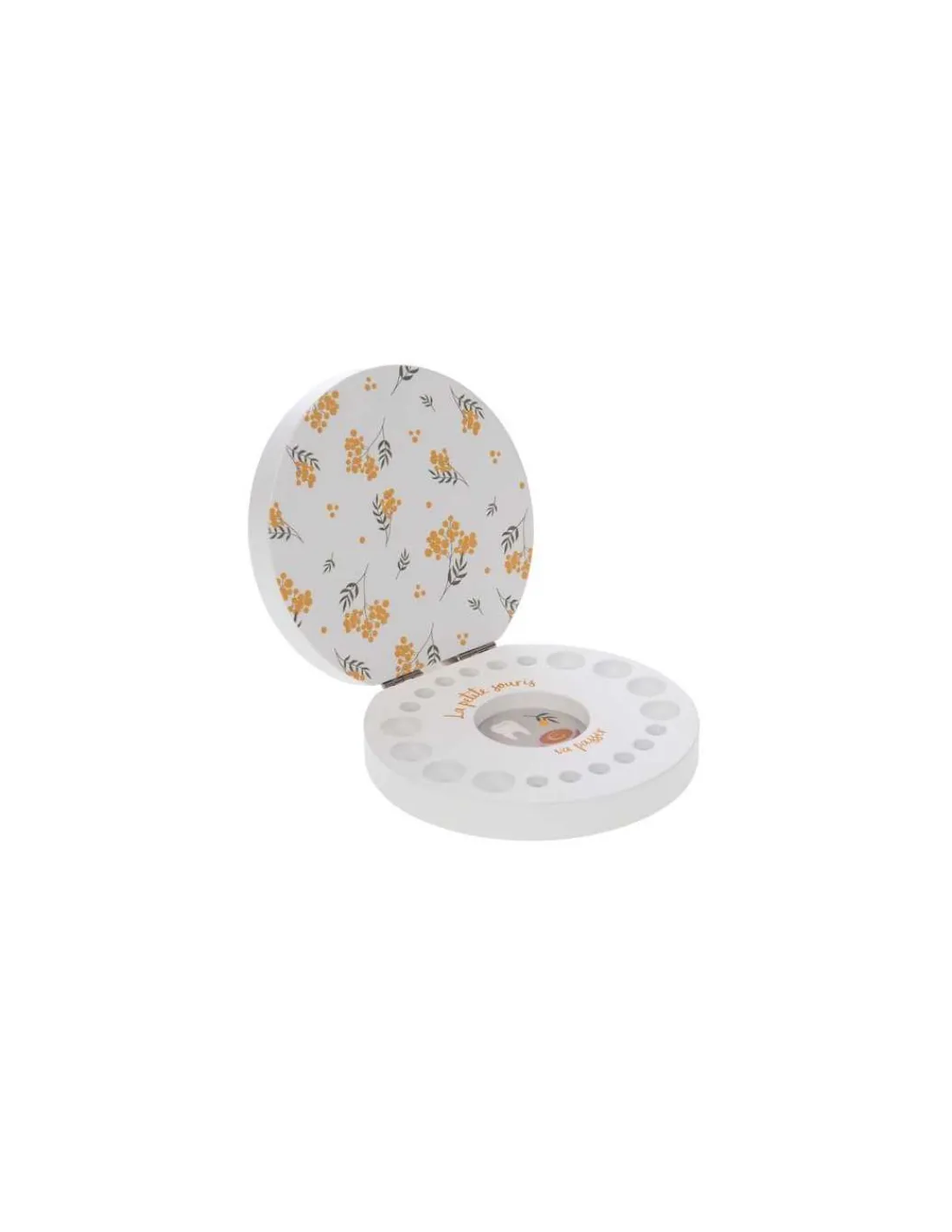 Découvrez la boite à dents Mimosa de Amadeus Les Petits, une boite à quenottes en bois illustrée qui gardera précieusement les premières dents de votre enfant.