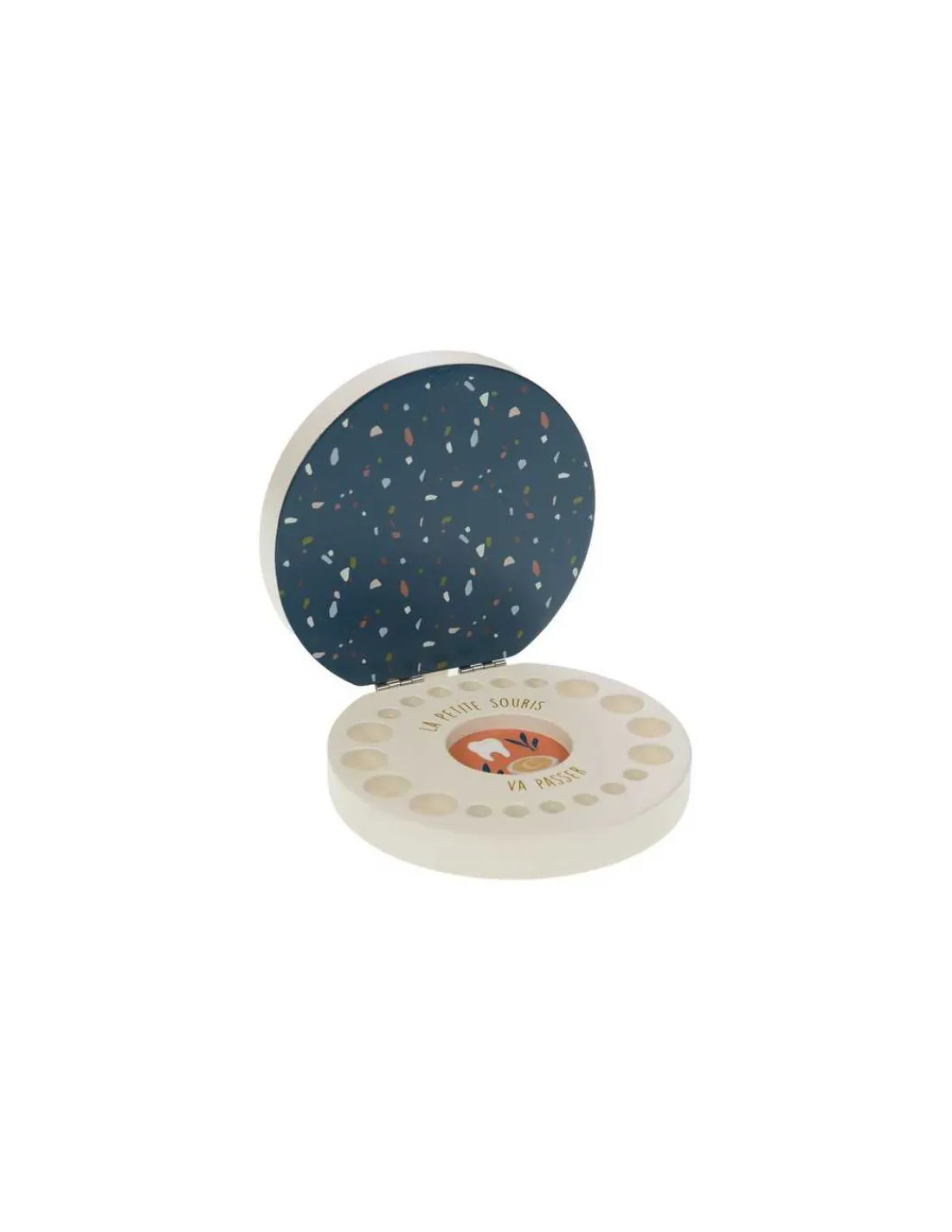 Une jolie boite qui s’ouvre, dans laquelle vous pourrez placer les 20 dents de lait de votre enfant et y glisser une pièce à l’intérieur lorsque la souris sera passée.