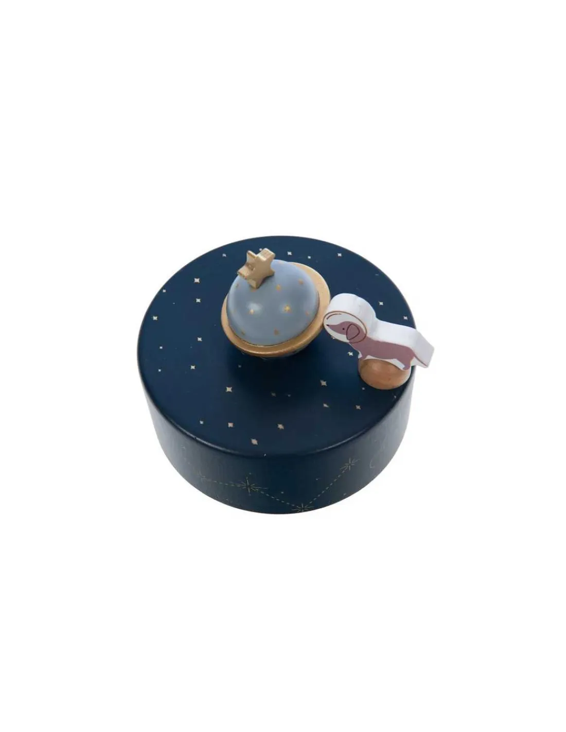 Ce cadeau trouvera sa place dans toutes les chambres d’enfants. Un cadeau musical où le mécanisme de la boite à musique se remonte en dessous de la boite. Votre enfant va adorer regarder tourner Marcel le chien astronaute au son de la douce mélodie.