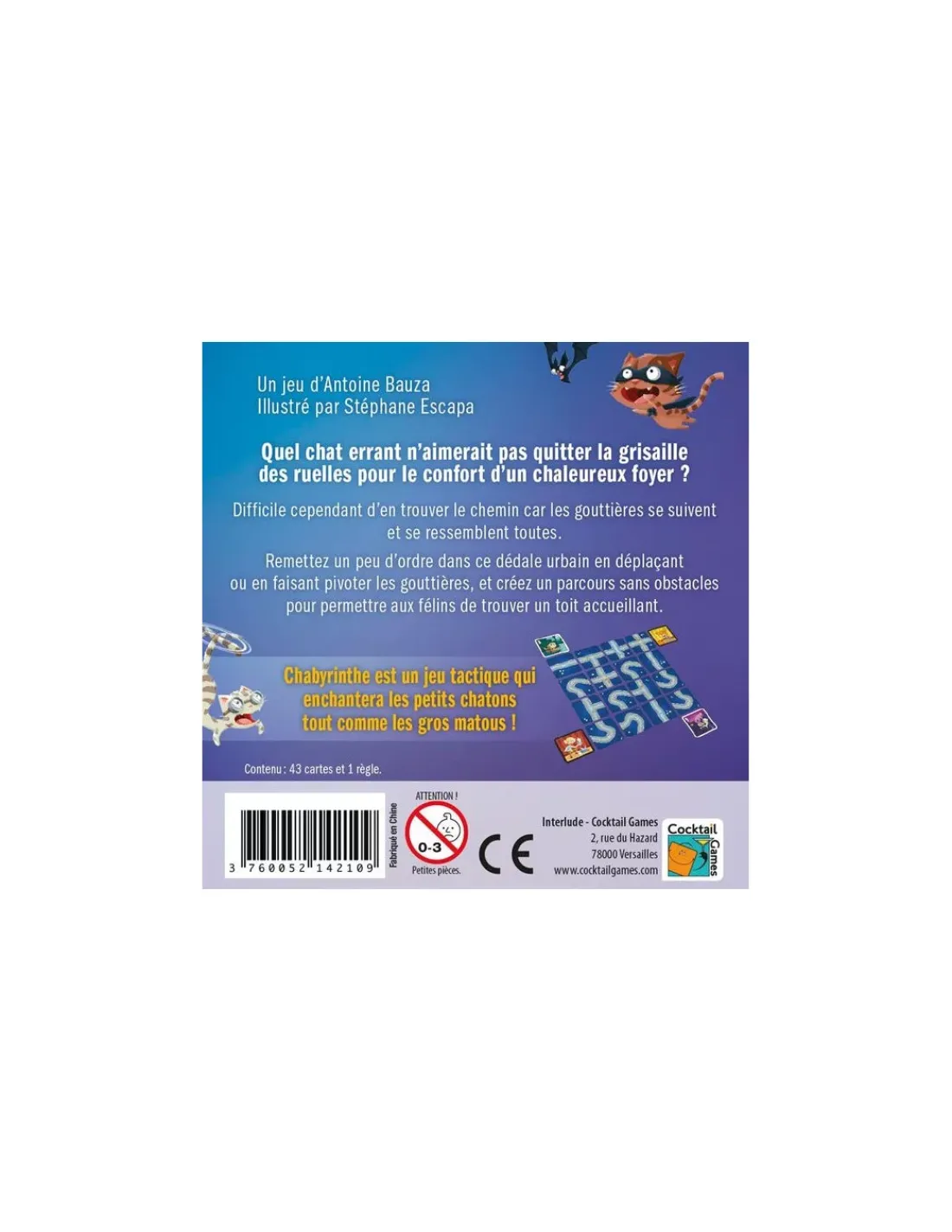 Découvrez le jeu Chabyrinthe de Cocktail games, un jeu tactique à partir de 6 ans qui enchantera les petits chatons tout comme les gros matous !
