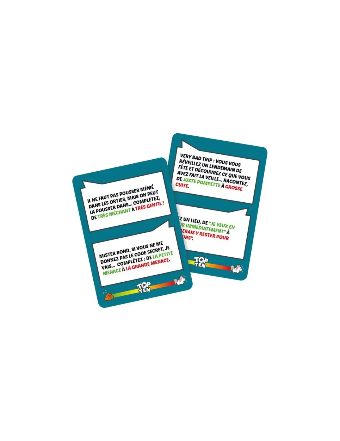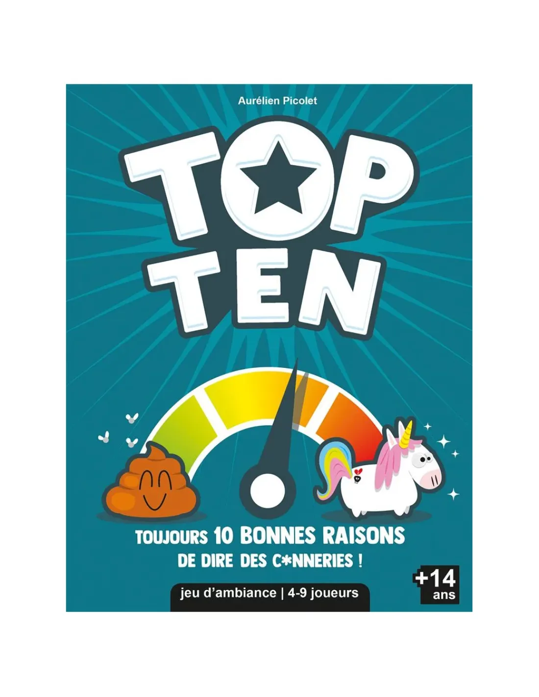 Découvrez le jeu Top ten de Cocktail games, un jeu d’ambiance coopératif pour jouer à partir de 4 joueurs dès 14 ans. Un jeu coopératif innovant et drôle avec toujours 10 bonnes raisons de dire des conneries où tous les joueurs sont dans la même équipe.
