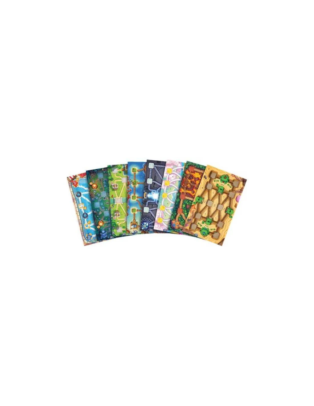 À votre tour de jeu, piochez deux tuiles « Troupe » de votre couleur ou posez une tuile en respectant les règles : elle doit se placer sur une case vide ou par-dessus une tuile de nombre inférieur, et vous devez pouvoir tracer une ligne continue entre votre base et la tuile que vous posez. Ensuite, appliquez son pouvoir. Petit à petit, vous gagnerez des médailles ou prendrez la base adverse, remportant la partie. Affrontez-vous sur les 8 champs de bataille différents pour varier les stratégies!