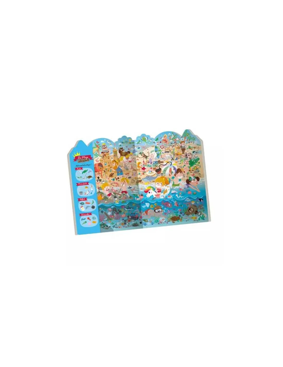 Un cherche et trouve, avec 26 éléments à retrouver dans chaque lieu du royaume : le village, la rivière, la forêt, la montagne la grotte ou encore la plage ! Ce livre-jeu favorise l’attention, l’observation et la concentration de l’enfant et peut se jouer seul ou à plusieurs.
