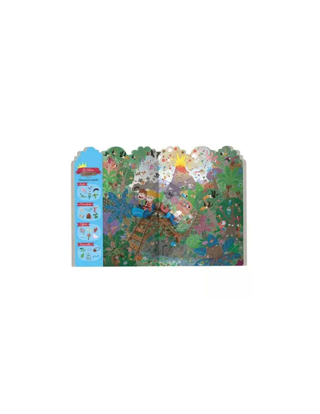 Un cherche et trouve, avec 26 éléments à retrouver par ordre de difficulté dans chaque lieu du royaume Dufouillis : le village de Cafouillis-les-oies, le Volcan Furax, la Grand Flaque d’Eau, la Forêt en Chantier, le Port Nawak, le Champ du Moulin Pourri. Ce livre-jeu favorise l’attention, l’observation et la concentration de l’enfant et peut se jouer seul ou à plusieurs.