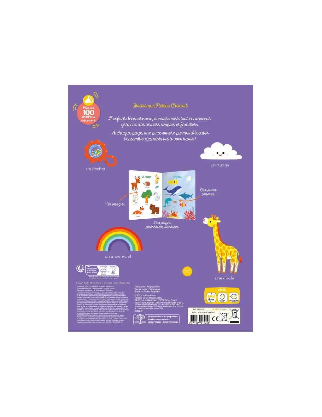 Découvrez le livre Mes 100 premiers mots à écouter de Auzou, un superbe livre d’éveil pour les enfants dès 1 an. L’enfant appuie sur une puce sonore pour entendre un mot.