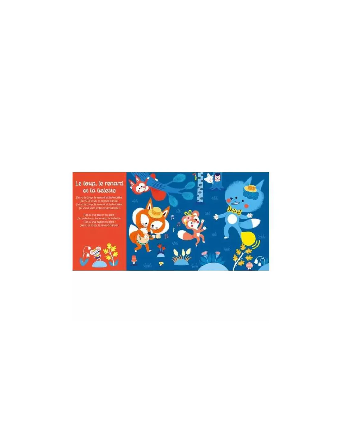 Un livre sonore pour s’initier au rythme et danser seul ou à plusieurs sur 6 comptines d’animaux : Le loup, le renard et la belette ; Poissons dans l’eau ; L’araignée Gyspie ; Une puce, un pou ; Il pleut, il mouille et Il court, il court, le furet.
