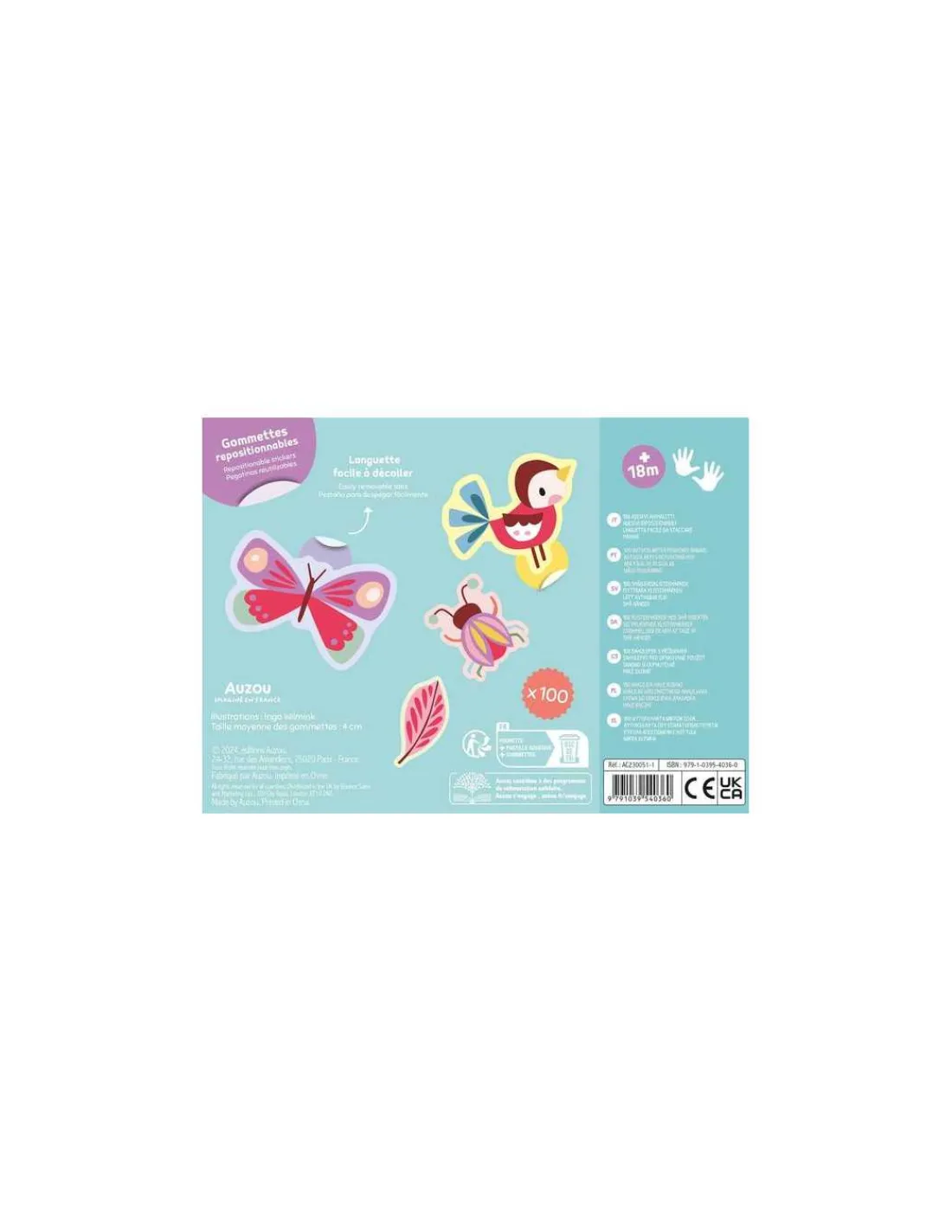 100 gommettes des p’tites bêtes, repositionnables pour favoriser la créativité des enfants. Avec la grosse languette facile à décoller, les autocollants peuvent être utilisés en toute autonomie dès l’âge de 18 mois.