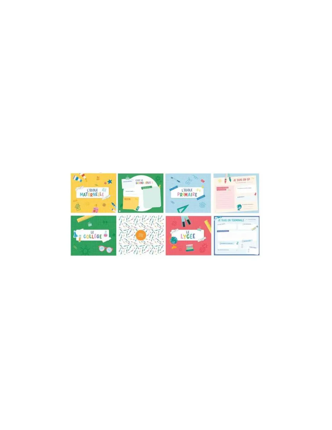 Glissez tous les souvenirs d’école de votre enfant dans cet album qui regroupera ses souvenirs de la maternelle, du primaire, collège et du lycée.