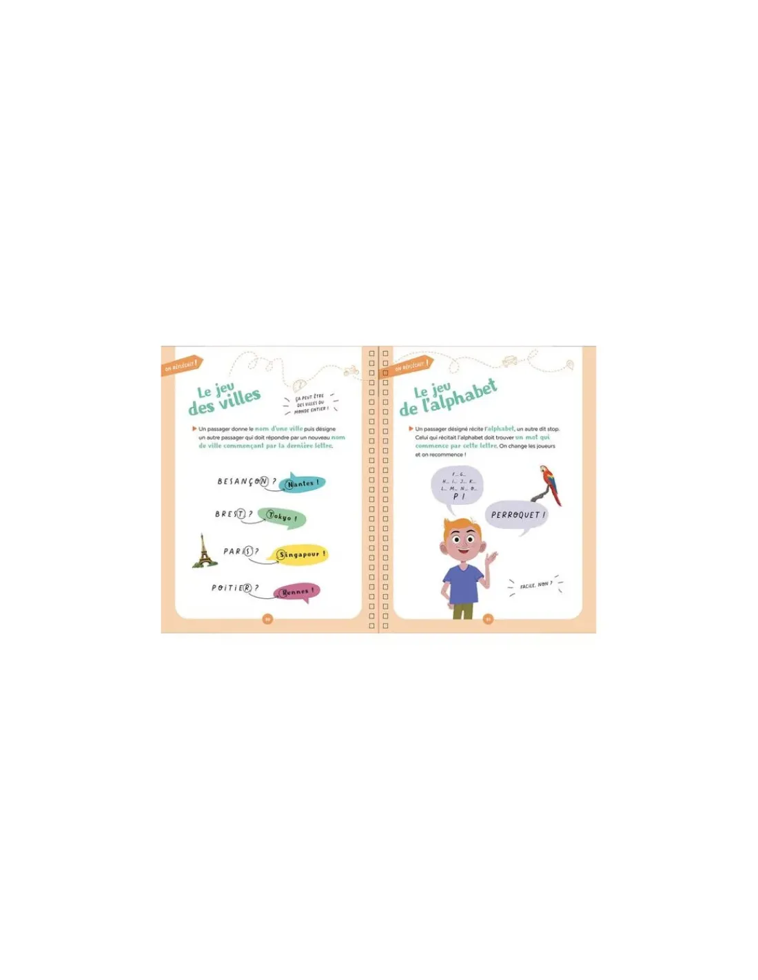 Les kilomètres défilent et l’ennui vous guète? Vous craignez de ne pas tenir en place jusqu’à la fin du trajet? Grâce à ce livre, vous allez découvrir de nombreuses activités pour jouer, chanter, bouger, mimer, deviner, se challenger… Il propose des heures de jeu qui donneront l’impression que ce trajet n’était finalement pas si long.