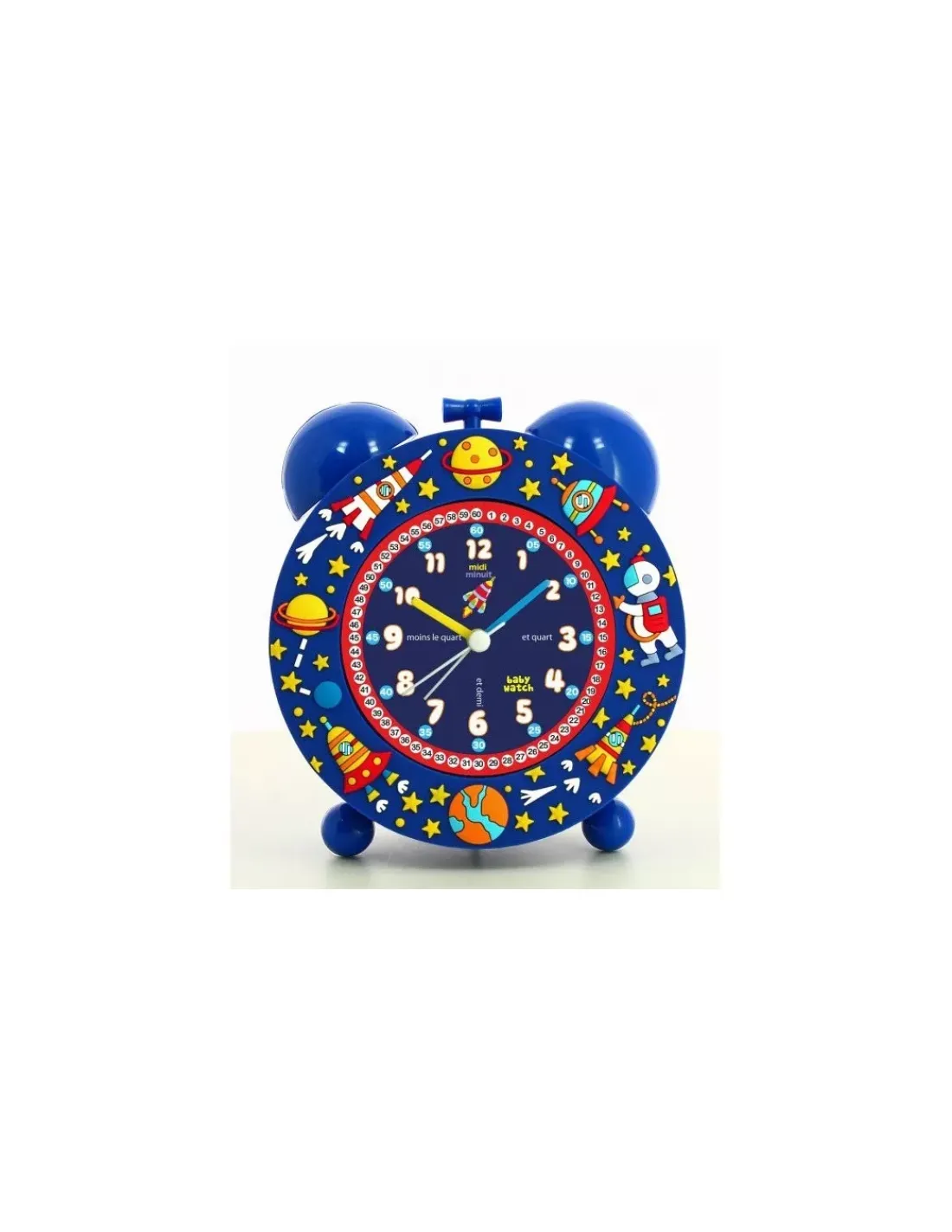 Découvrez le réveil cosmos de BabyWatch pour les enfants à partir de 4 ans, un magnifique réveil évolutif silencieux avec un contour en relief illustré sur l’espace qui s’enlève lorsque votre enfant grandit. Un design vintage, un cadran bien lisible et des dessins colorés et joyeux.