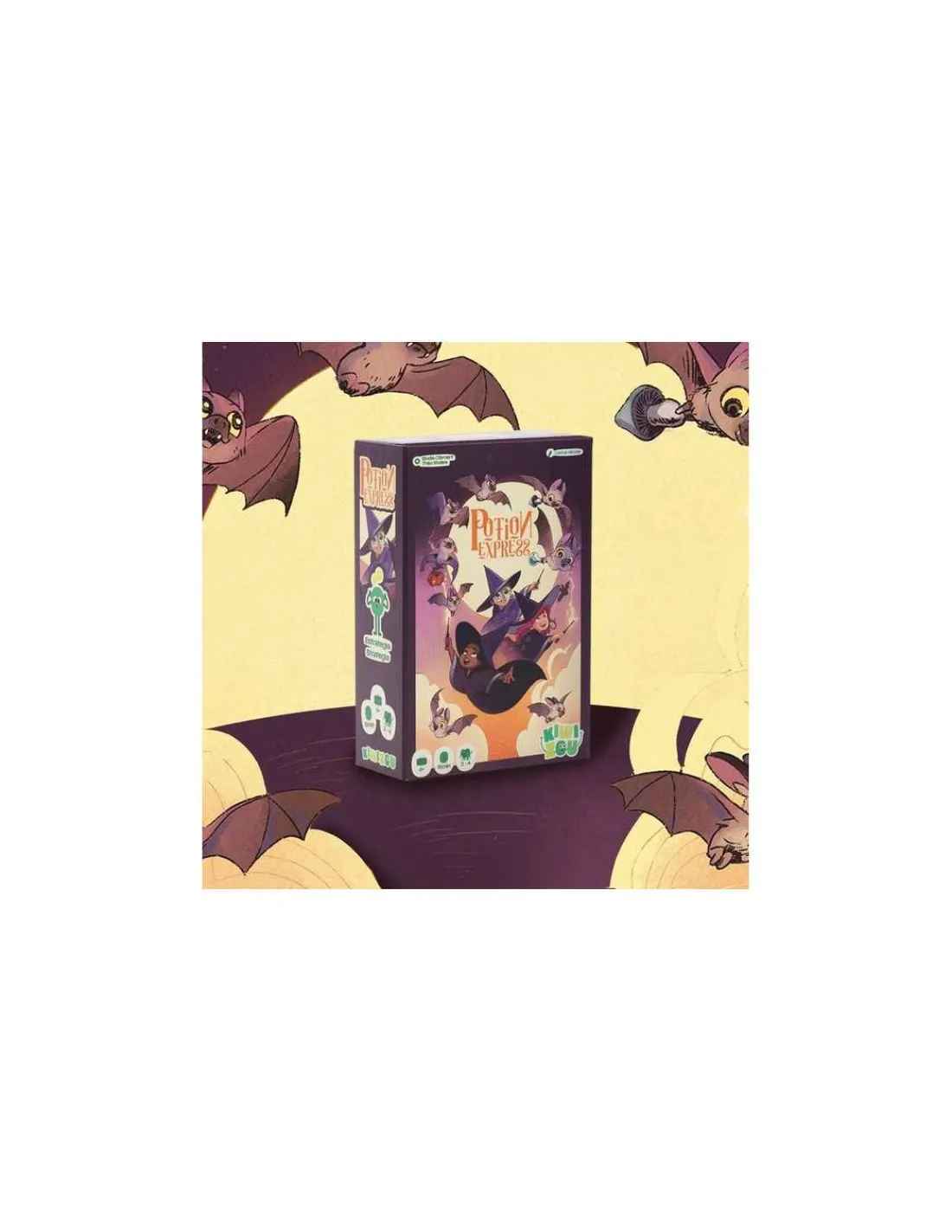 Les commandes tombent et c’est l’ébullition au service livraison de Potion Express! Les joueurs incarnent de jeunes apprentis sorciers et doivent collecter les ingrédients nécessaires aux potions commandées par les grands mages du village. Pour récupérer ces ingrédients, les joueurs devront attraper des chauves-souris en plein vol. Les cartes sont recto-verso : une face avec une chauve-souris endormie et l’autre avec une chauve-souris en plein vol transportant 1 ou 2 ingrédients. Les cartes sont mélangées afin d’obtenir un paquet avec des cartes dans les 2 sens : recto et verso. 9 cartes sont posées en carré de 3 x 3 sur la table. 3 tuiles Potion sont posée à coté, représentant les commandes des mages avec les ingrédients nécessaires à leur réalisation. À son tour de jeu un joueur pointe, avec sa baguette magique, une ligne ou une colonne de 3 cartes. Abracadabra : il retourne les 3 cartes de cette ligne ou colonne. Les chauves-souris en plein vol s’endorment et les endormies se réveillent. Il attrape alors les cartes chauve-souris en plein vol de la ligne ou colonne. Il vérifie si les ingrédients collectés lui permettent de réaliser l’une des 3 tuiles Potion. S’il le peut, il prend la tuile correspondante et défausse les cartes Chauve-souris nécessaires à sa réalisation. Le joueur complète le carré de la table avec de nouvelles cartes Chauve-souris, sans en changer la face et la main passe au joueur suivant qui pointe une nouvelle ligne ou colonne. Les tours s’enchaînent et les joueurs devront se rappeler les ingrédients transportés par les différentes chauves-souris qui se sont endormies afin de récolter les bons ingrédients nécessaires aux potions commandées. Le premier joueur à réaliser 3 potions remporte la partie.