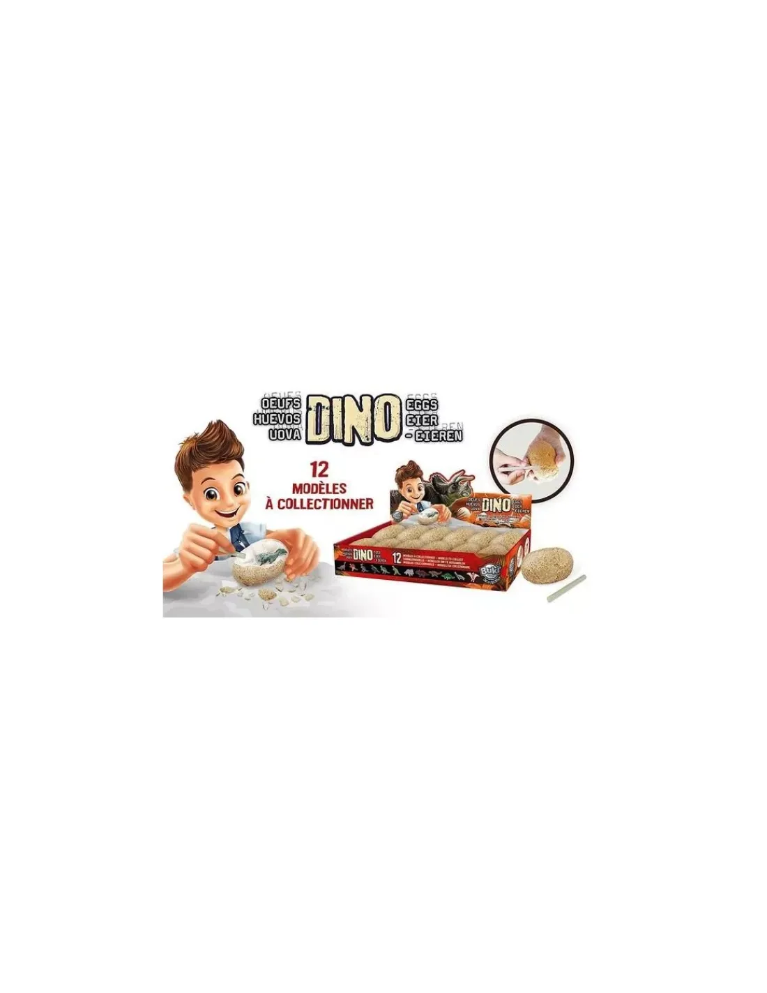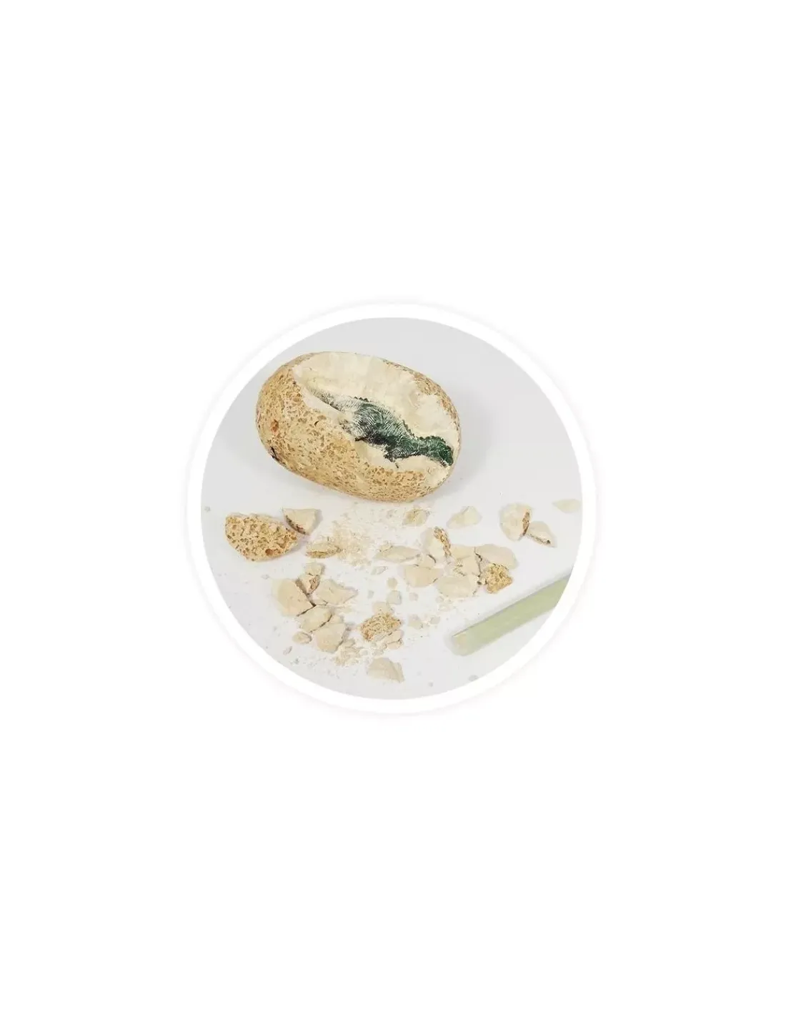 Découvrez l’oeuf dino à déterrer de Buki, un oeuf à creuser avec un outil pour découvrir une figurine de dinosaure à collectionner. Il existe 12 modèles de dinosaure.