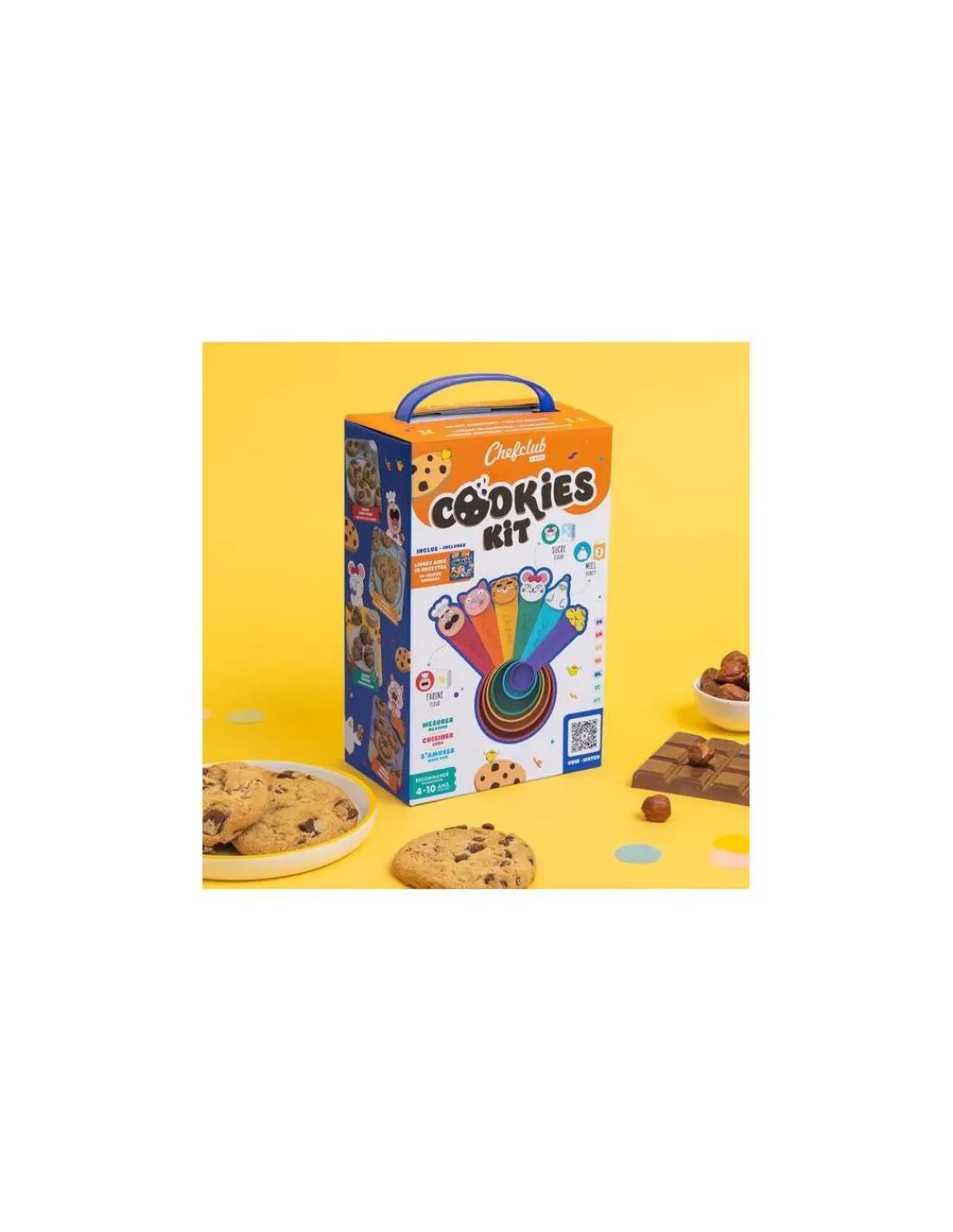 Découvrez le Kit Cookies avec tasses de Chefclub Kids, un coffret comprenant un lot de cuillères colorées et un livre de recettes permettant aux enfants d’apprendre à cuisiner facilement dès 4 ans.