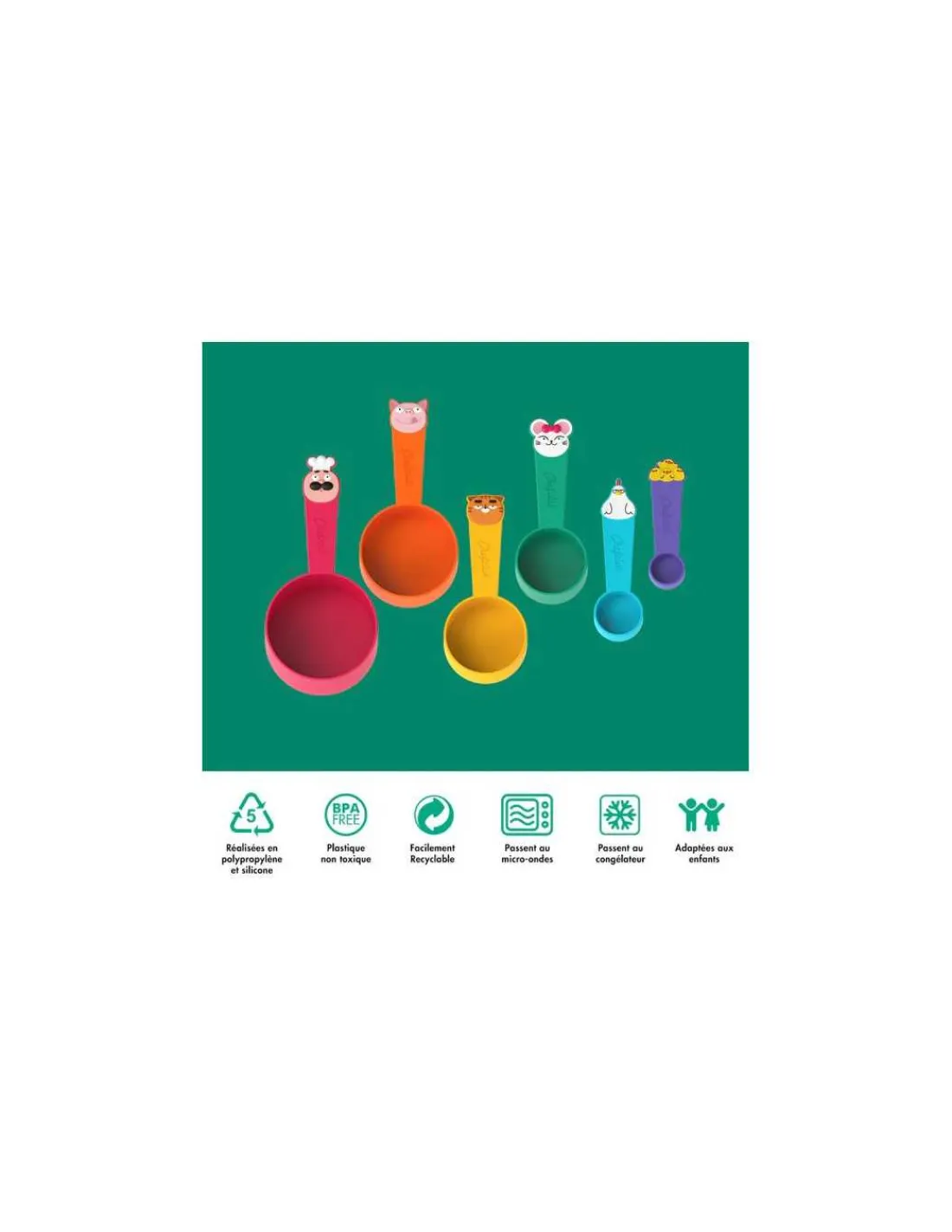 Ce kit unique facilite la compréhension des mesures pour les plus jeunes, grâce à des tasses colorées et amusantes représentant différents personnages, chacun correspondant à une unité de mesure spécifique (grammes, centilitres, millilitres). Parfait pour transformer des moments ordinaires en cuisine en expériences délicieuses et pédagogiques, le kit inclut également un livret de recettes de 228 pages richement illustré. Les enfants peuvent suivre les recettes simples et visionner les 6 vidéos bonus pour apprendre à cuisiner en s’amusant.