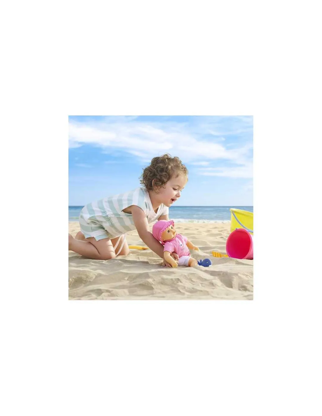 Une jolie poupée fille qui mesure 30 cm, un poupon avec une taille parfaitement adaptée aux petits bras et petites mains de votre enfant. Son corps souple lui permet de prendre les mêmes positions qu’un vrai bébé. Son visage, ses bras et ses jambes, à la délicate senteur de vanille, sont en vinyle doux au toucher. Son pouce peut se maintenir dans sa bouche. Avec ses yeux bleu dormeurs, il fait dodo quand on le couche sur le dos.