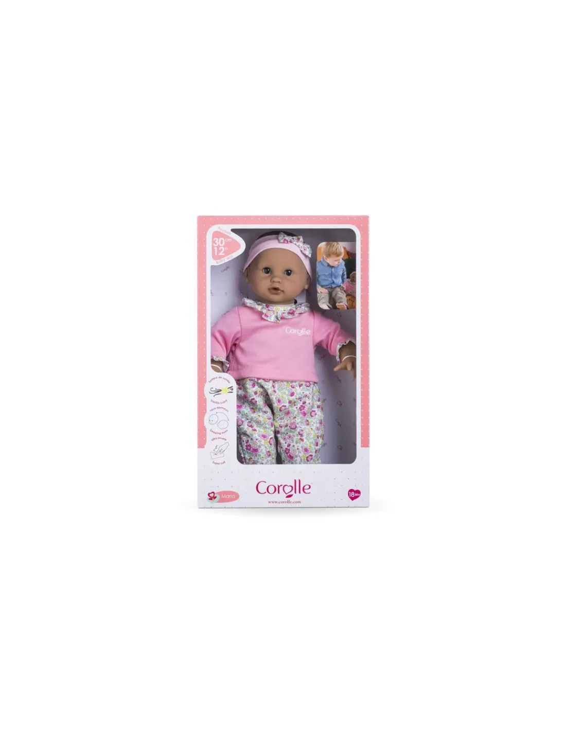 Découvrez le bébé calin Maria de Corolle, une poupée de 30 cm au corps souple pour les enfants dès 18 mois. Une poupée avec une taille parfaitement adaptée aux petits bras de votre enfant pour la câliner tendrement.