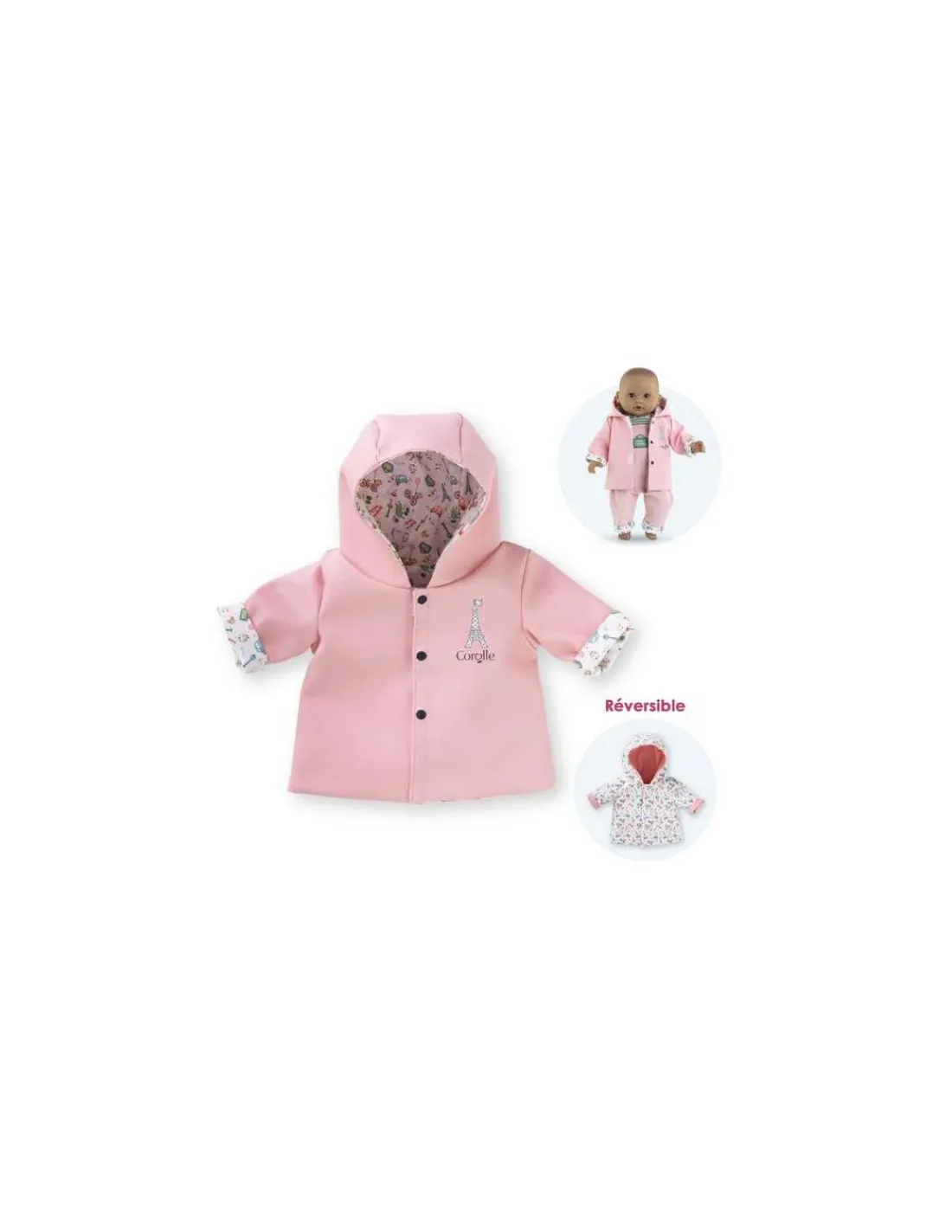 Découvrez le ciré réversible Week-End à Paris de Corolle, un vêtement pour les poupées de 30 cm. Un joli manteau pour le poupon de votre enfant.