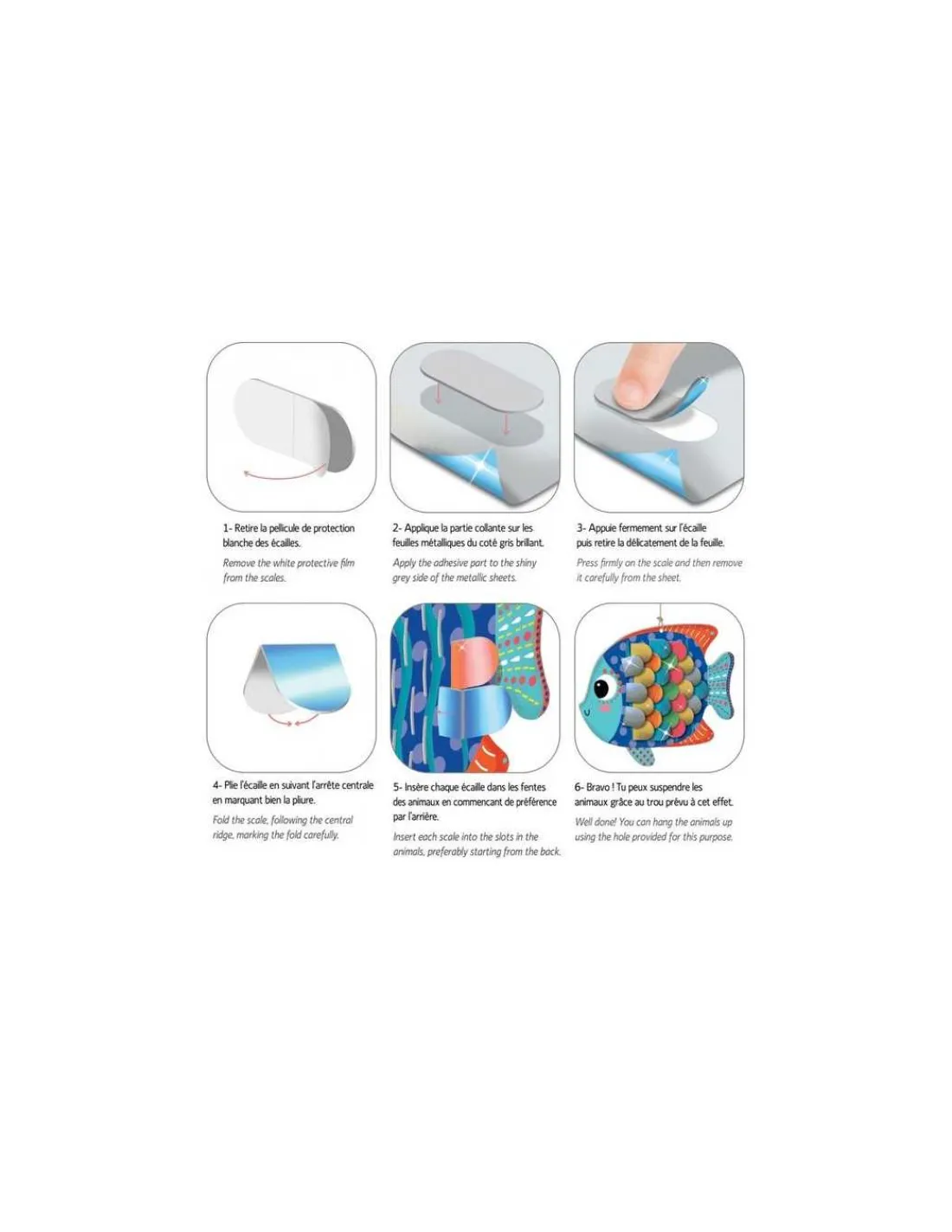 Un coffret qui permet aux enfants de créer de jolis animaux 3D, tout brillants grâce aux écailles à métalliser. Parfait pour exercer la dextérité et la motricité fine des plus jeunes.