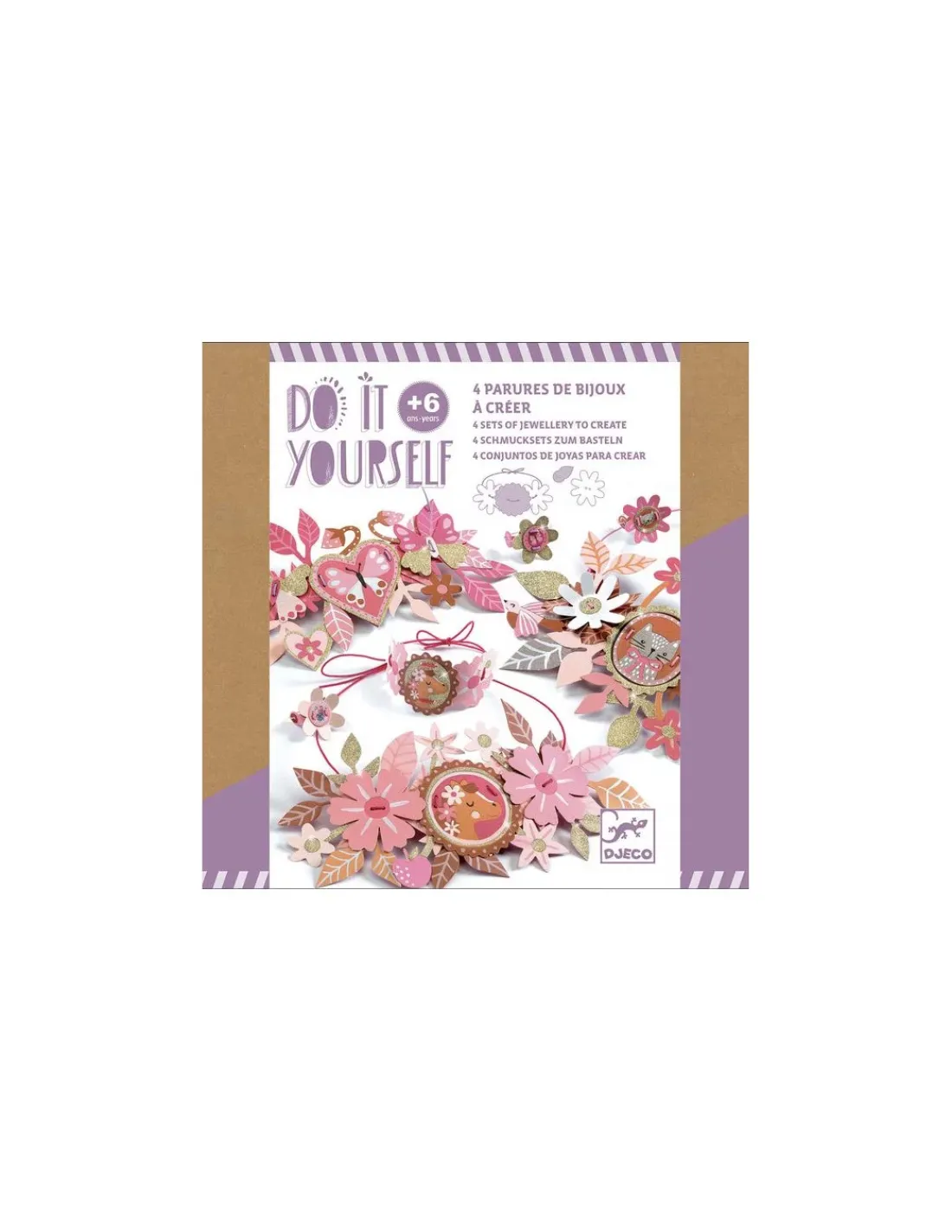 Découvrez le coffret 4 parures de bijoux à créer Doux médaillons de la collection Do It Yourself de Djeco, une activité créative pour les enfants à partir de 6 ans.