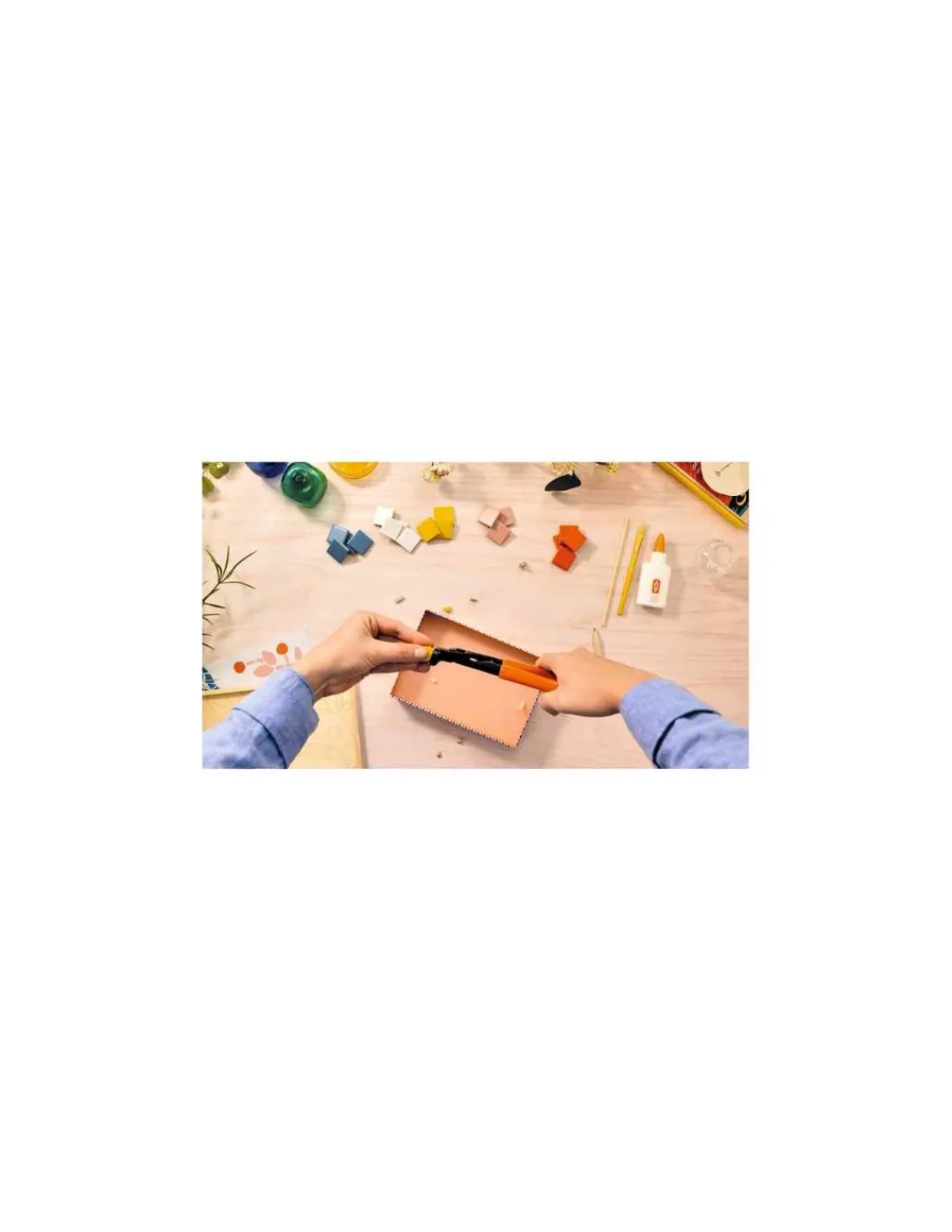 Un coffret complet avec tout le matériel nécessaire avec de vrais outils professionnels pour un geste précis et authentique, un support en bois qui accompagne la création et se transforme en cadre pour exposer fièrement votre œuvre, dans une jolie boîte décorée, pour mettre de côté son activité entre deux moments de création, puis la transformer en boîte à trésors.